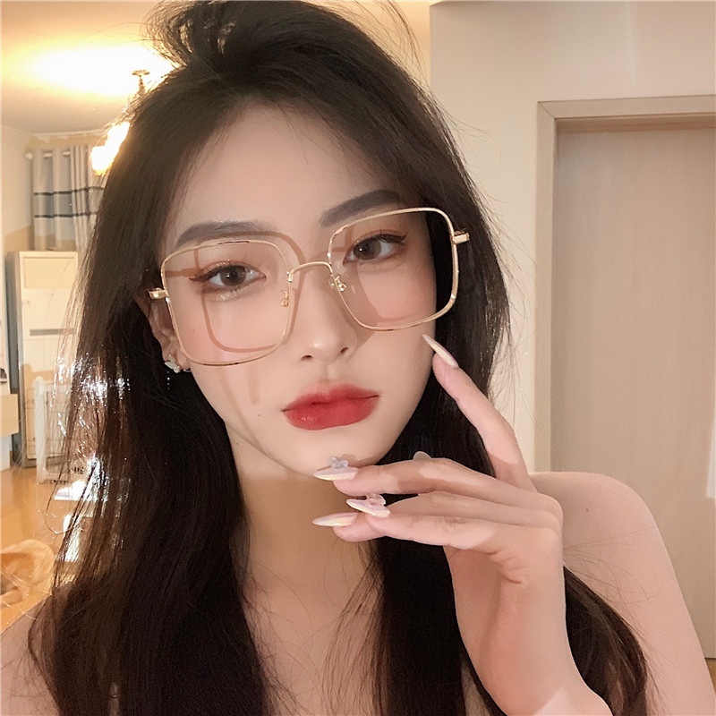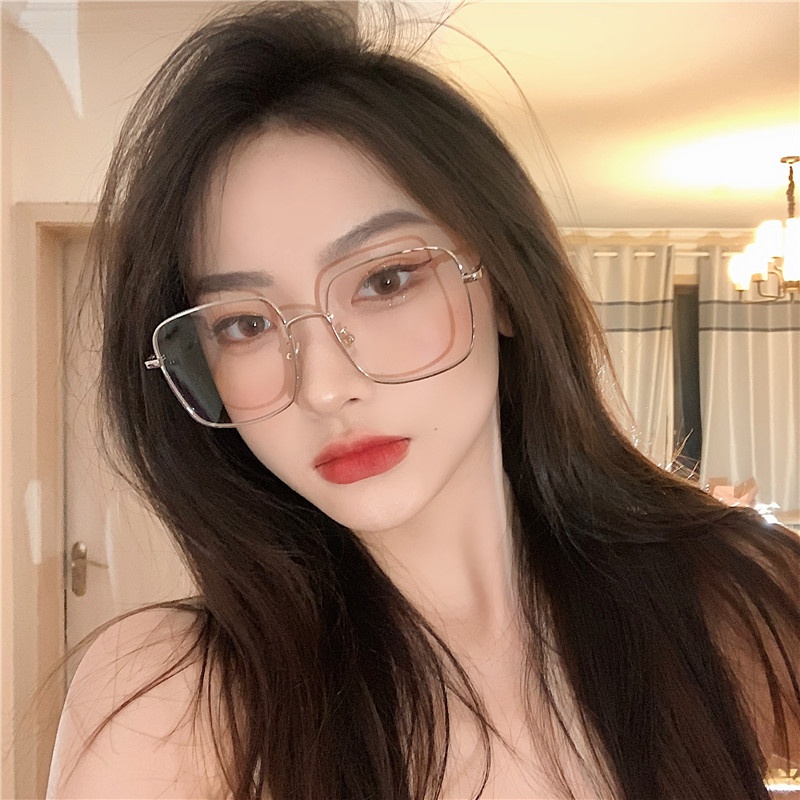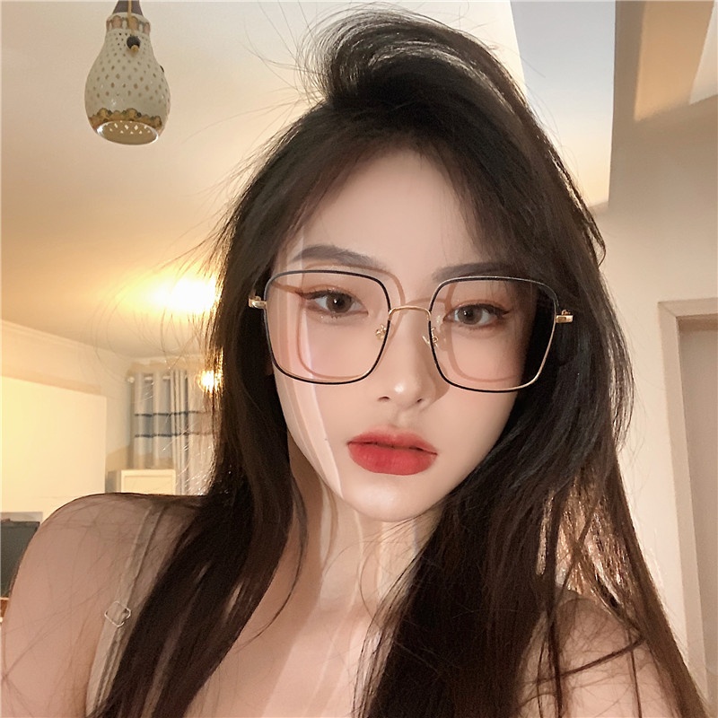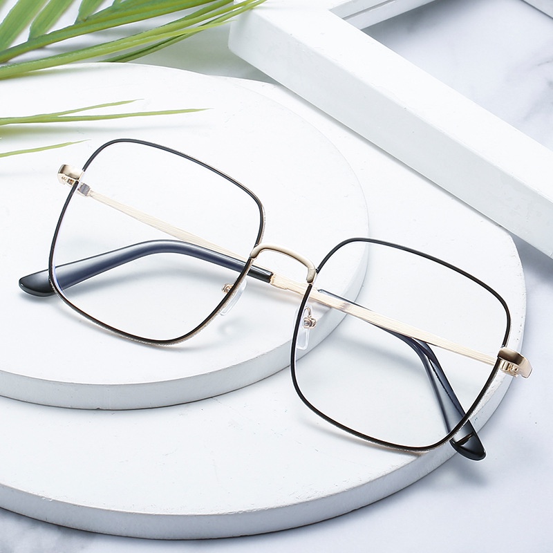 Lady Square Metal Computer Glasses Frame Retro Transparent Big Frame Glasses Fashion Finished myopia glasses Men Eyeglasses Frame