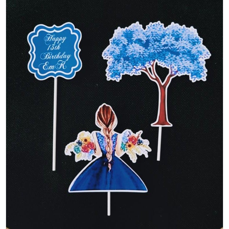 Lady in Dress Theme Cake Topper for Debut "Happy Birthday No Name"