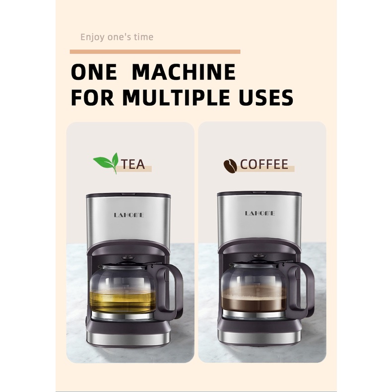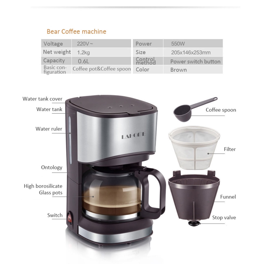 Lahome Americao Drip Coffee Maker Electric Coffee Machine Espresso Maker Drip Coffee Pot 0.7L Brown