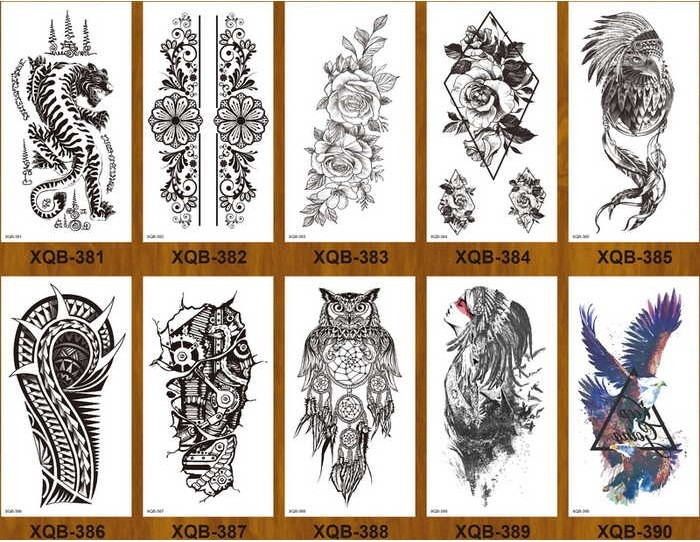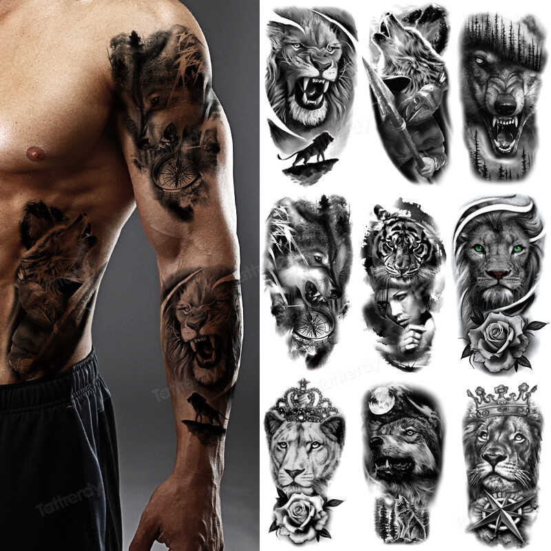Lalaki 10Pcs/Pack Tattoo Sticker Itim Na Walang Tubig Pansamantalang Tattoos Braso Manggas Sexy Kat