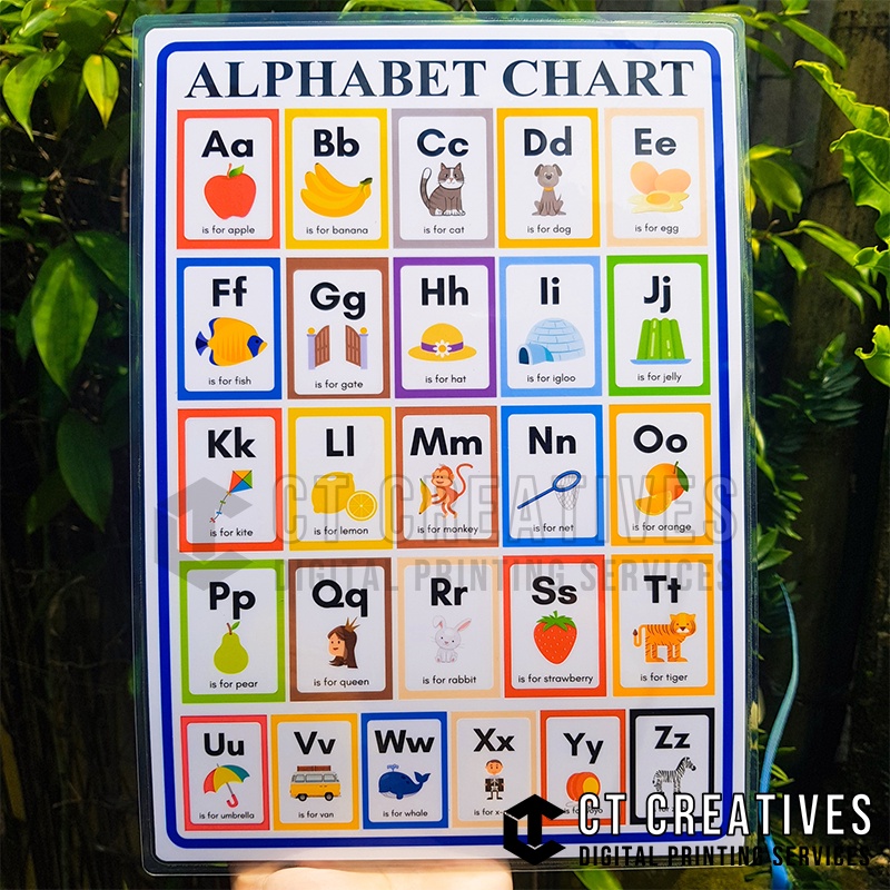 Laminated Alphabet, Shapes, Numbers Learning Chart A4 Size