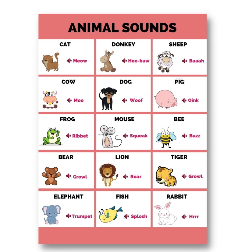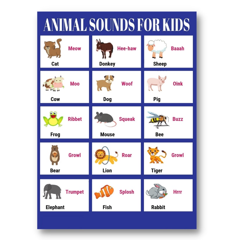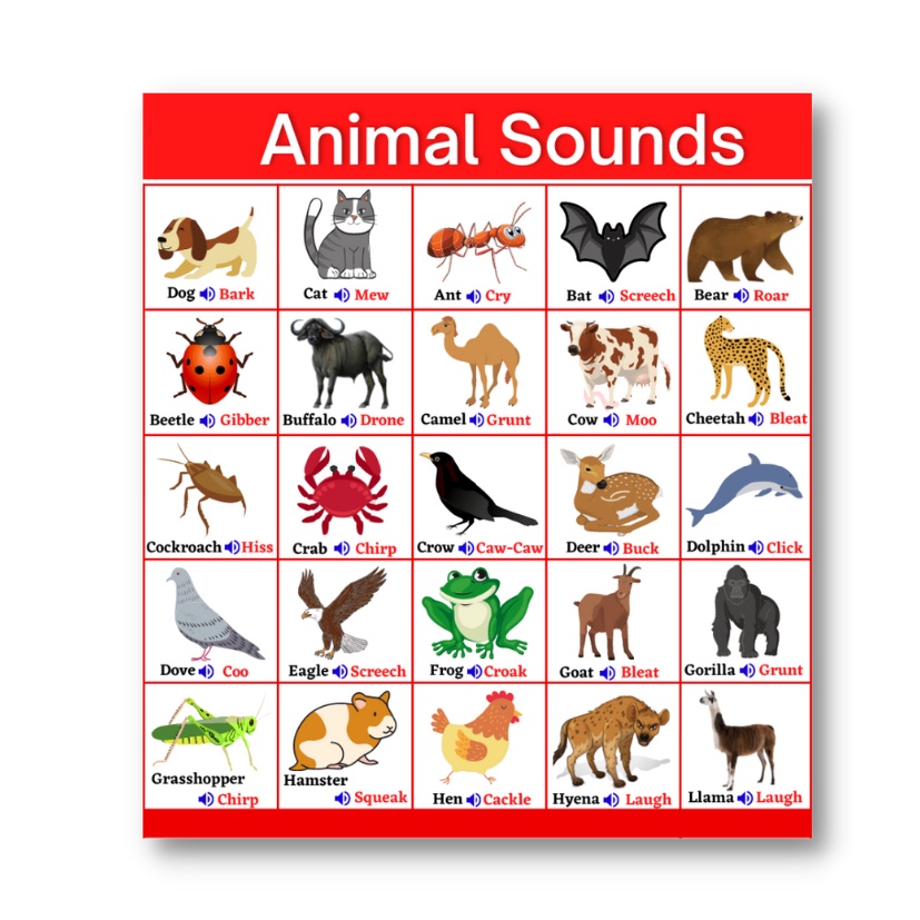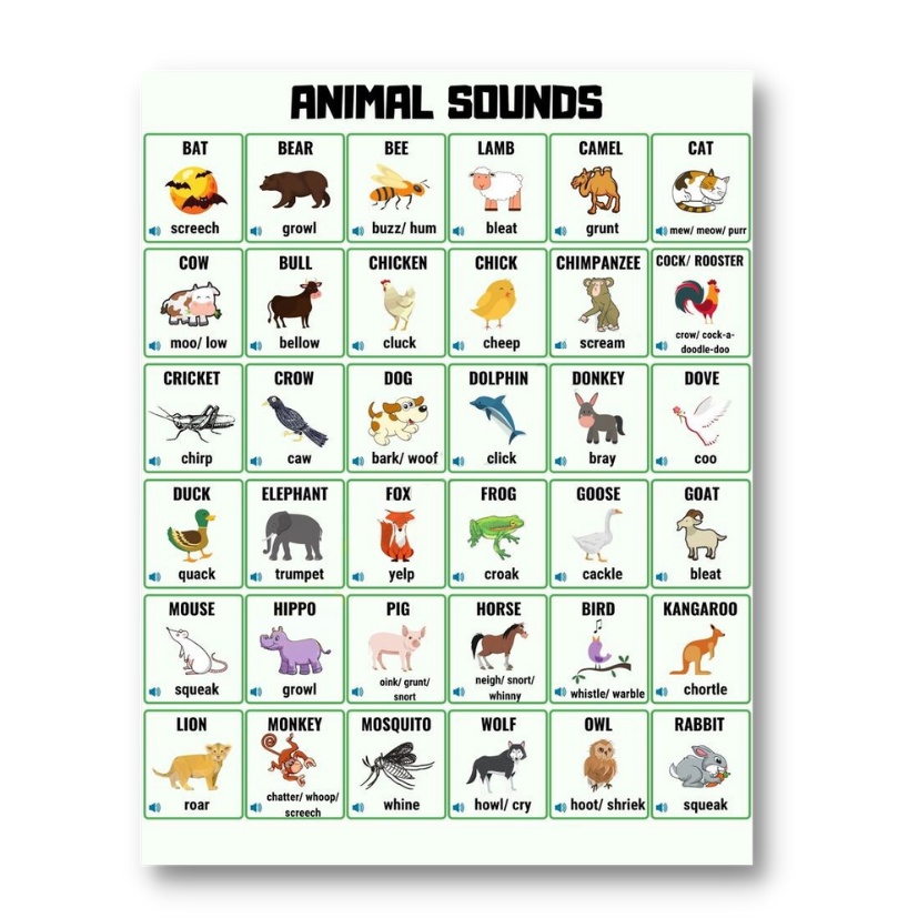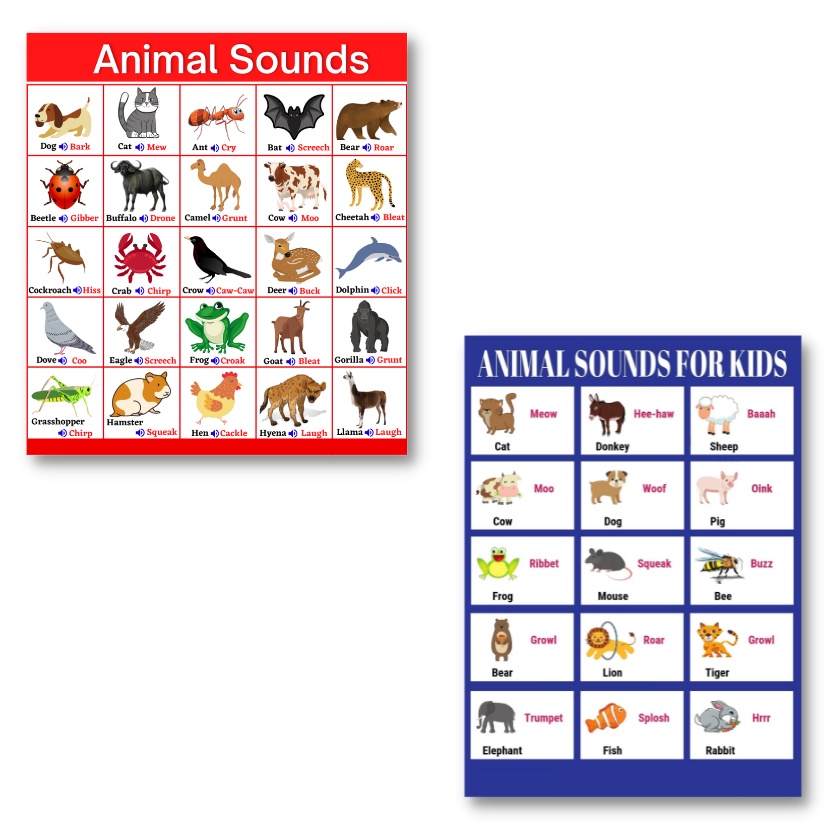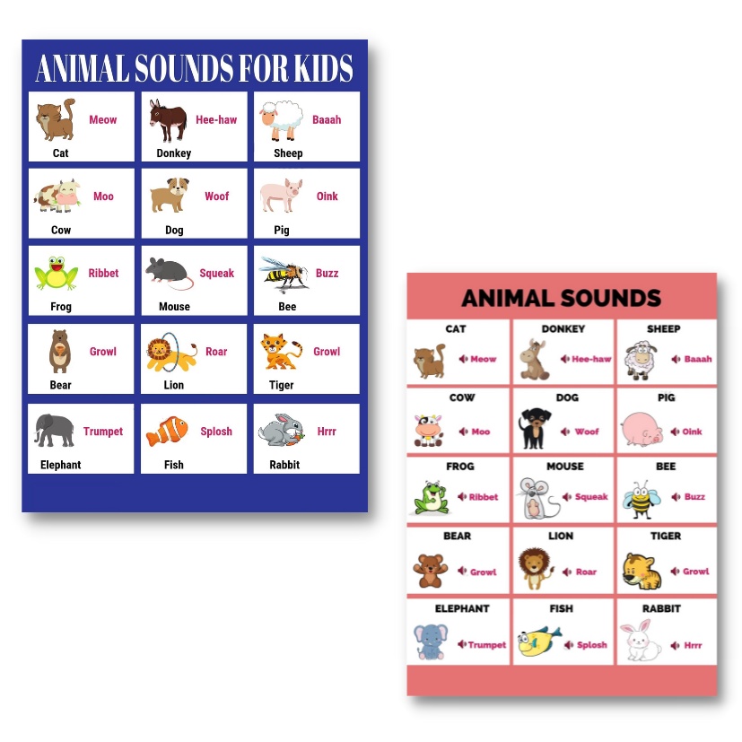 Laminated Animal Sounds Charts for Kids, Learners and Educators, Educational Charts