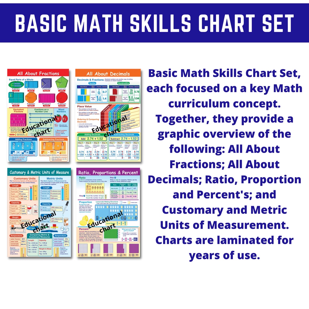 MATH CHARTS MATHEMATICAL FRACTIONS DECIMALS RATIO PROPORTIONS PERCENT MEASURE EDUCATIONAL FOR KIDS