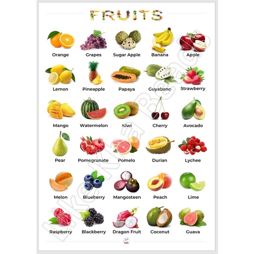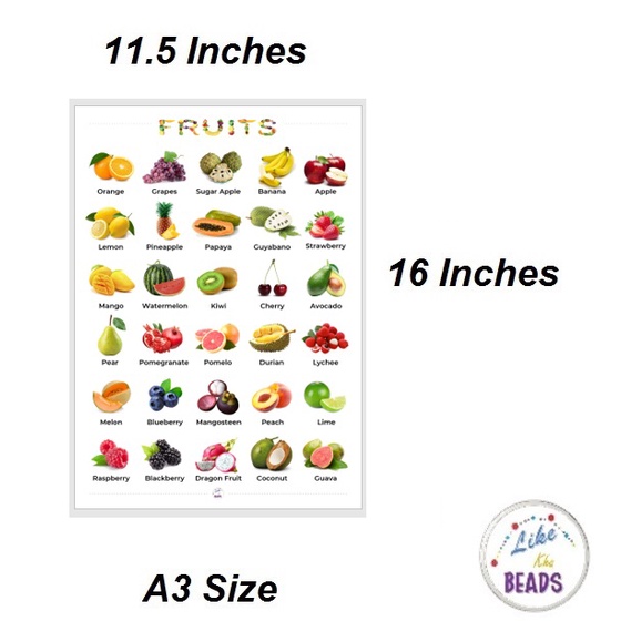 Laminated Big chart Fruits Educational Chart for kids, A3 Chart, Wall Chart (11.5 x 16 inches)