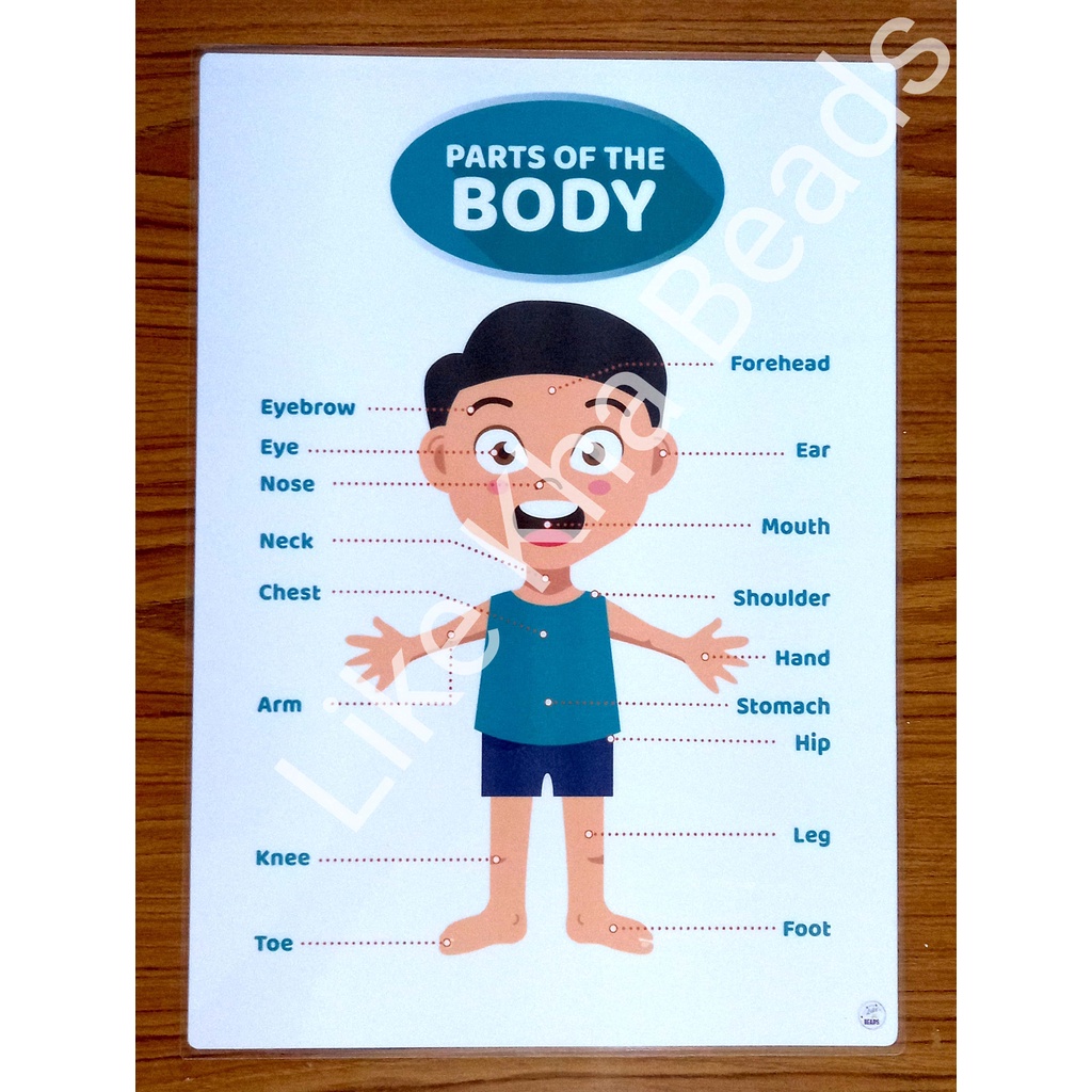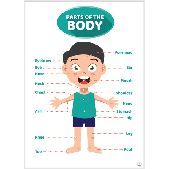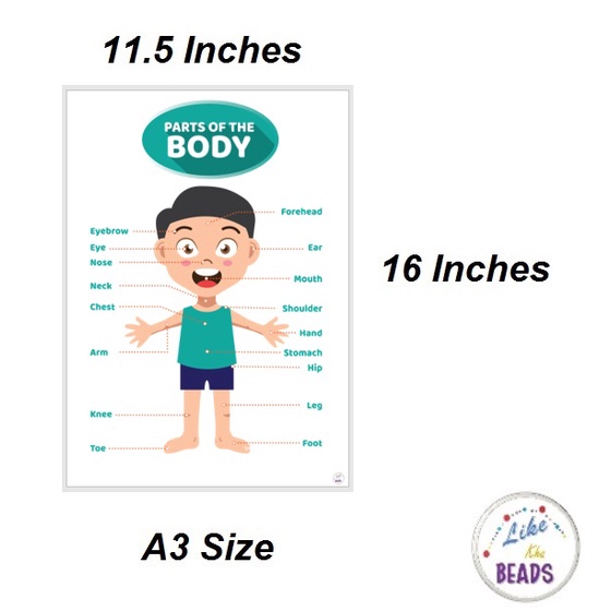 Laminated Big chart Parts of the Body (Boy) Educational Chart for kids, A3size, (11.5x16in)