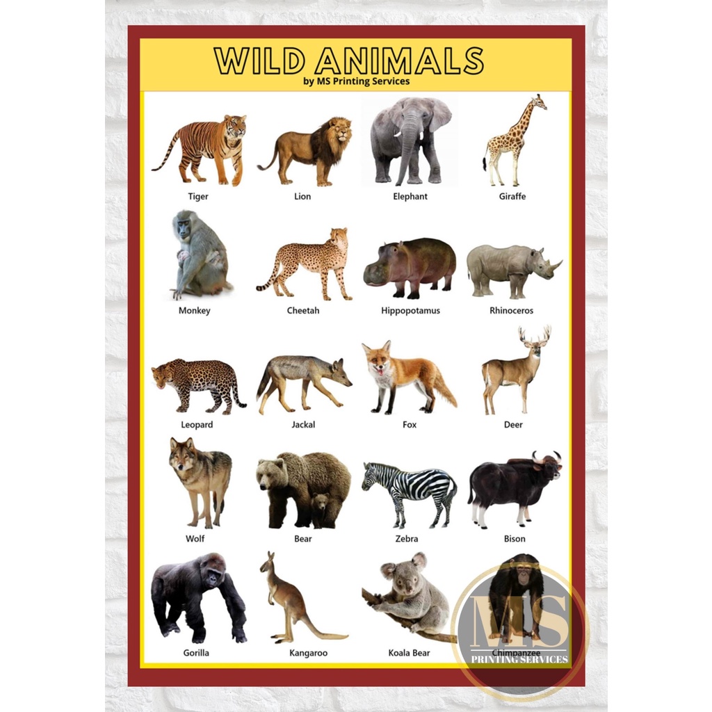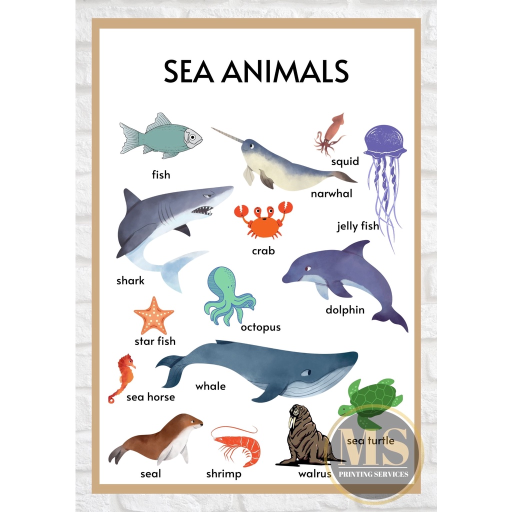 Laminated Chart (Farm, Sea, Wild, Insects, Birds and Dino) A4 Size
