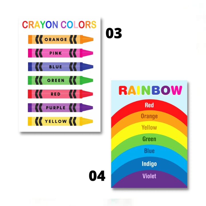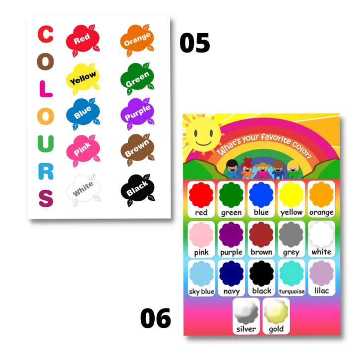 Laminated Color Charts for Kids, Pupils, Educators and Teachers, Educational Charts