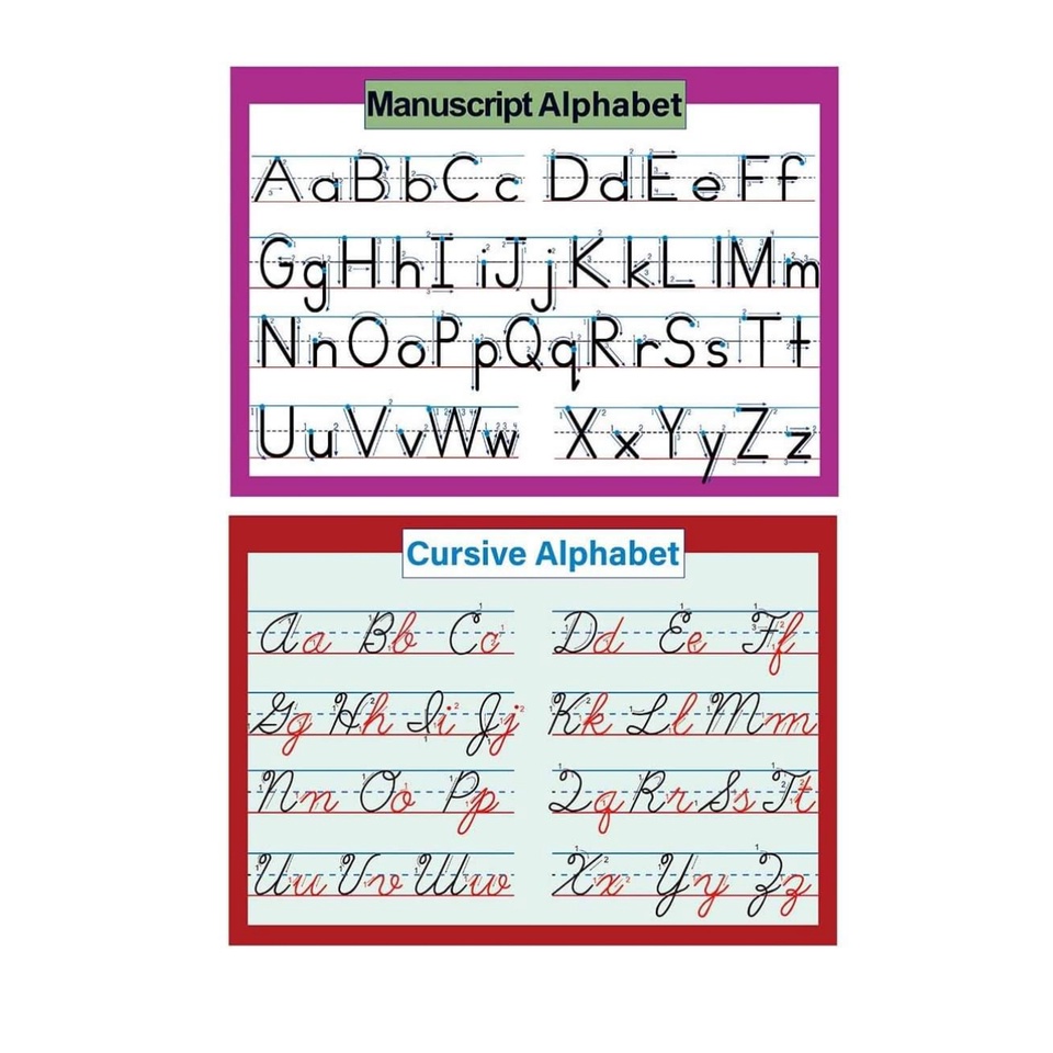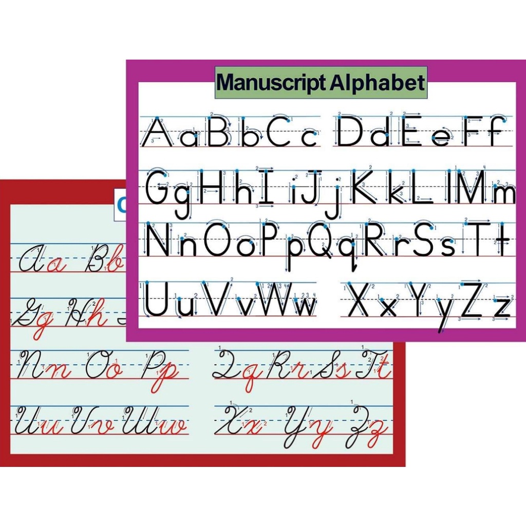 Laminated Cursive & Manuscript Alphabet Charts for Kids, Learners and Educators, Educational Charts