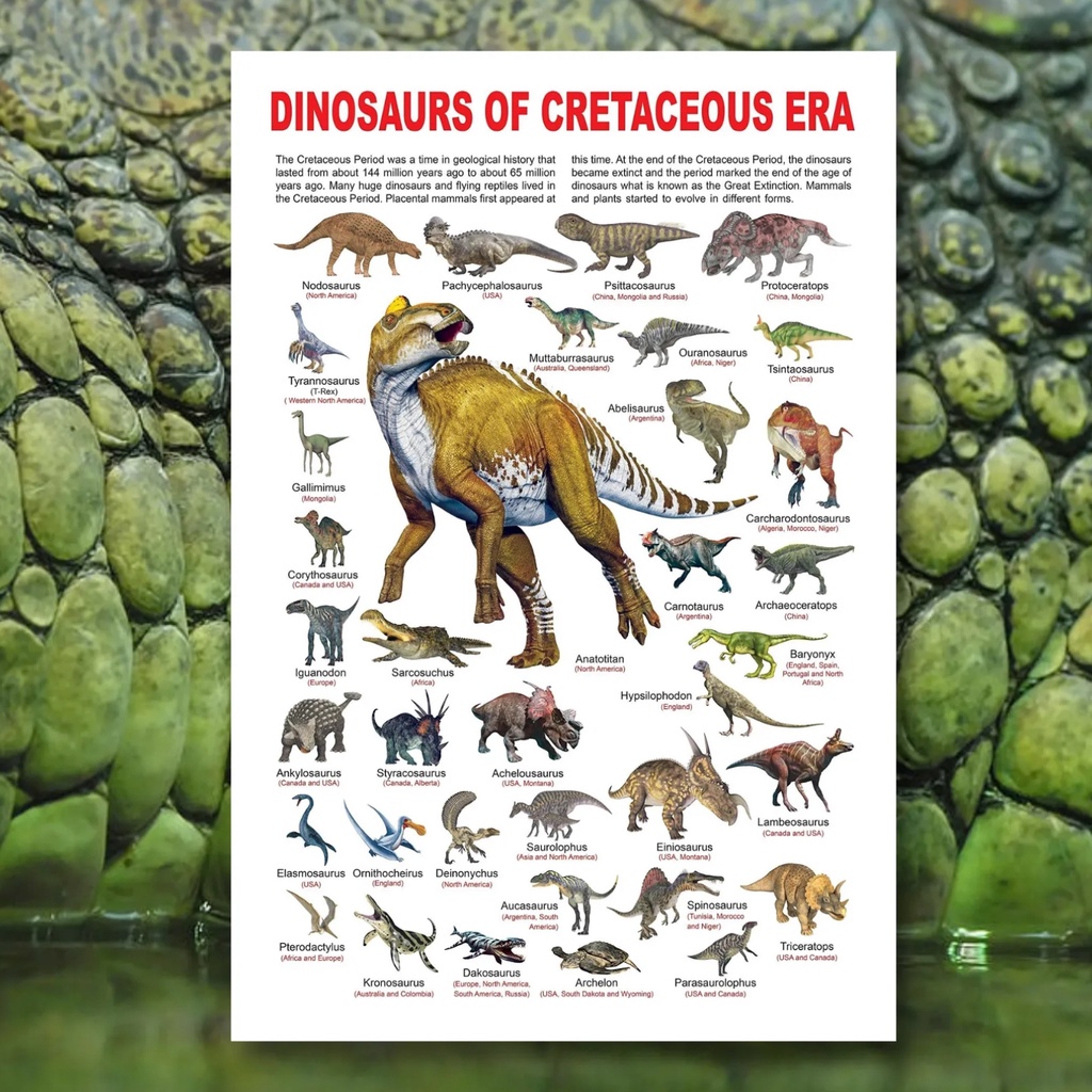 Laminated Dinosaurs Chart for Kids, Learners and Students, Science Charts, Educational Charts