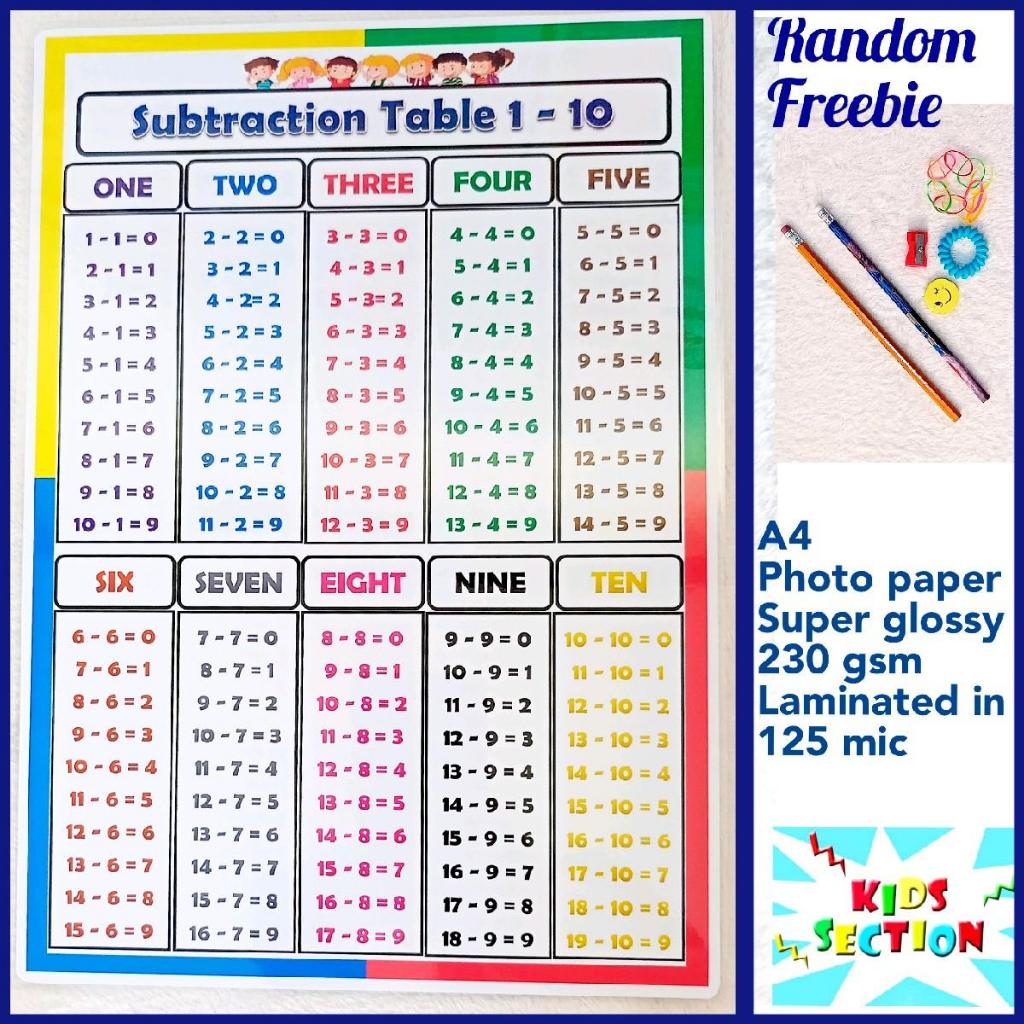 Laminated Educational Chart - Math Category - A4 - with random freebie