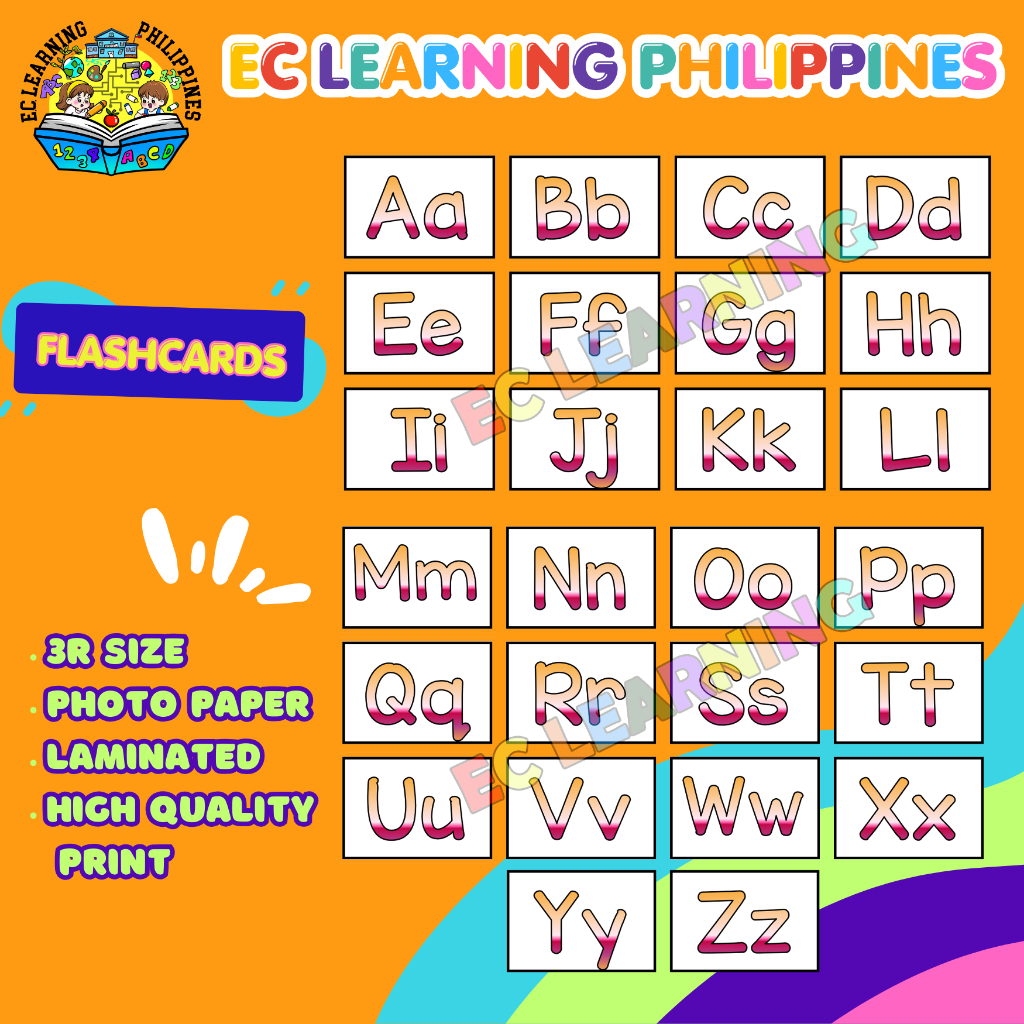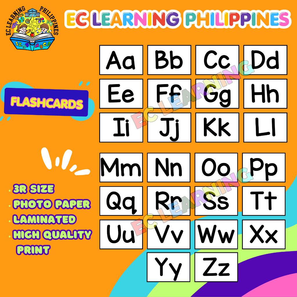 Laminated Flash Cards - ALPHABET Plain Upper and Lower Case in Black & White / Colored