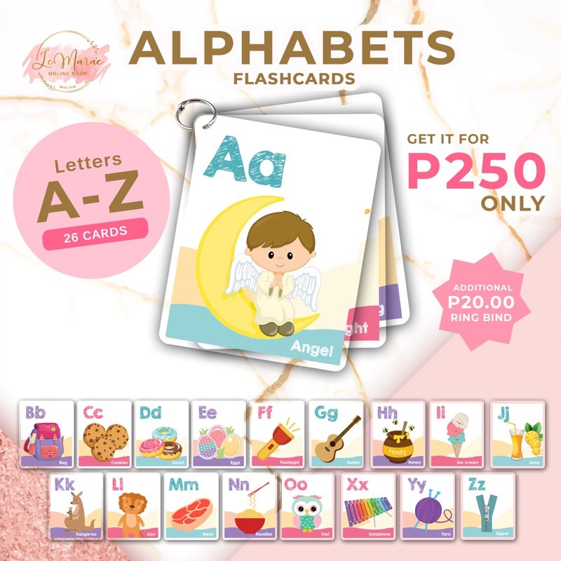 Laminated Flashcards ALPHABETS NEW WORDS Educational Toys for Kids and Toddlers ABC Cards Alphabets