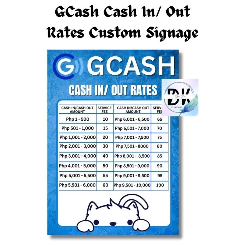 Laminated Gcash Cash In/ Out/ E-load Signage