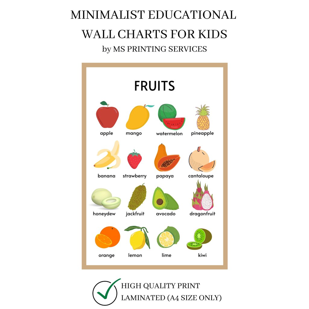 Laminated Minimalist Educational Wall Chart for Kids (Fruits)