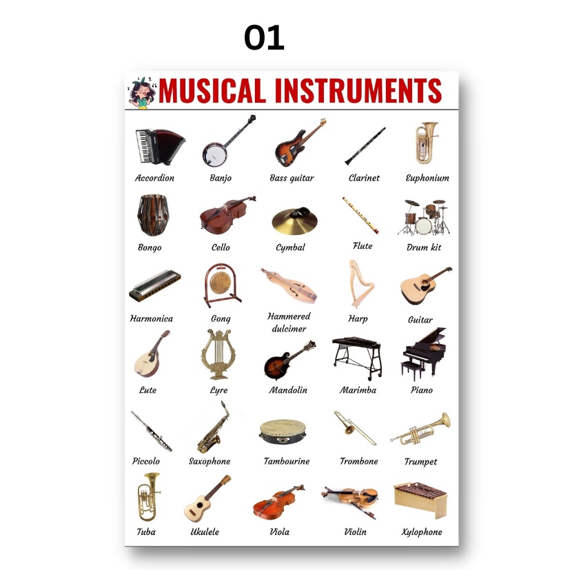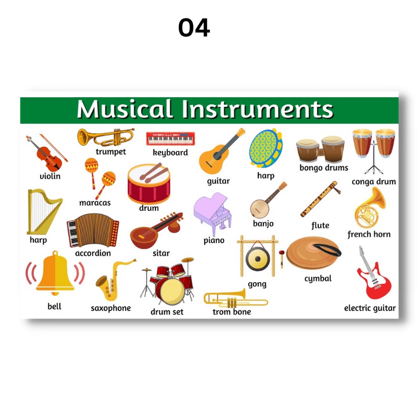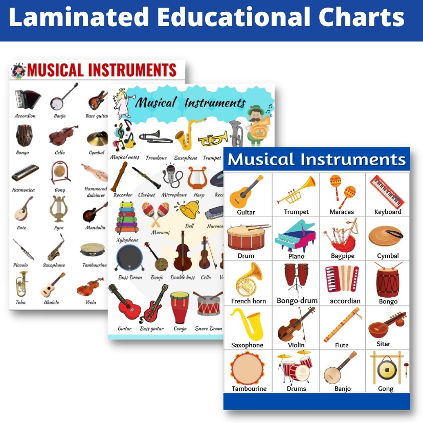 Laminated Musical Instruments Charts, Musical Instruments Posters for Kids, Learners and Educators