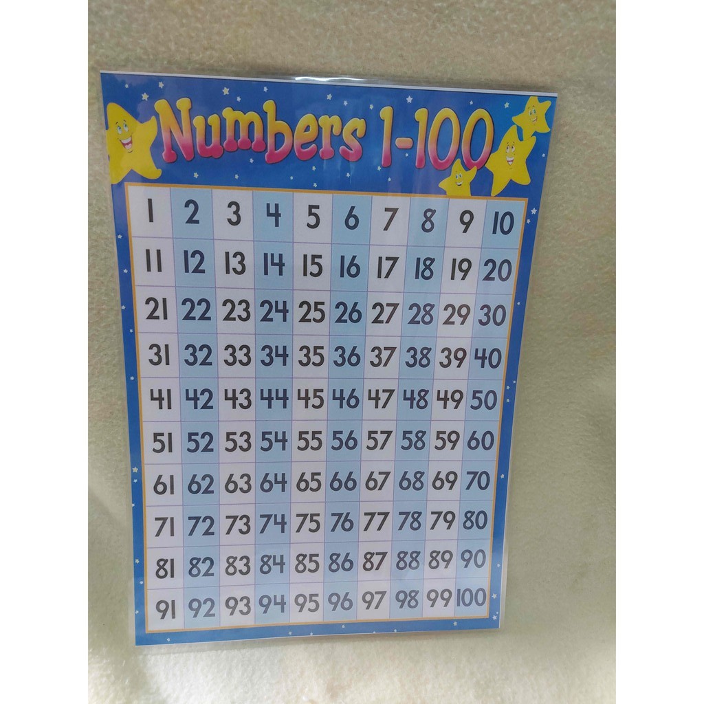 Laminated Numbers 1-100 Chart A4 size now Thicker with 250 microns laminating pouch