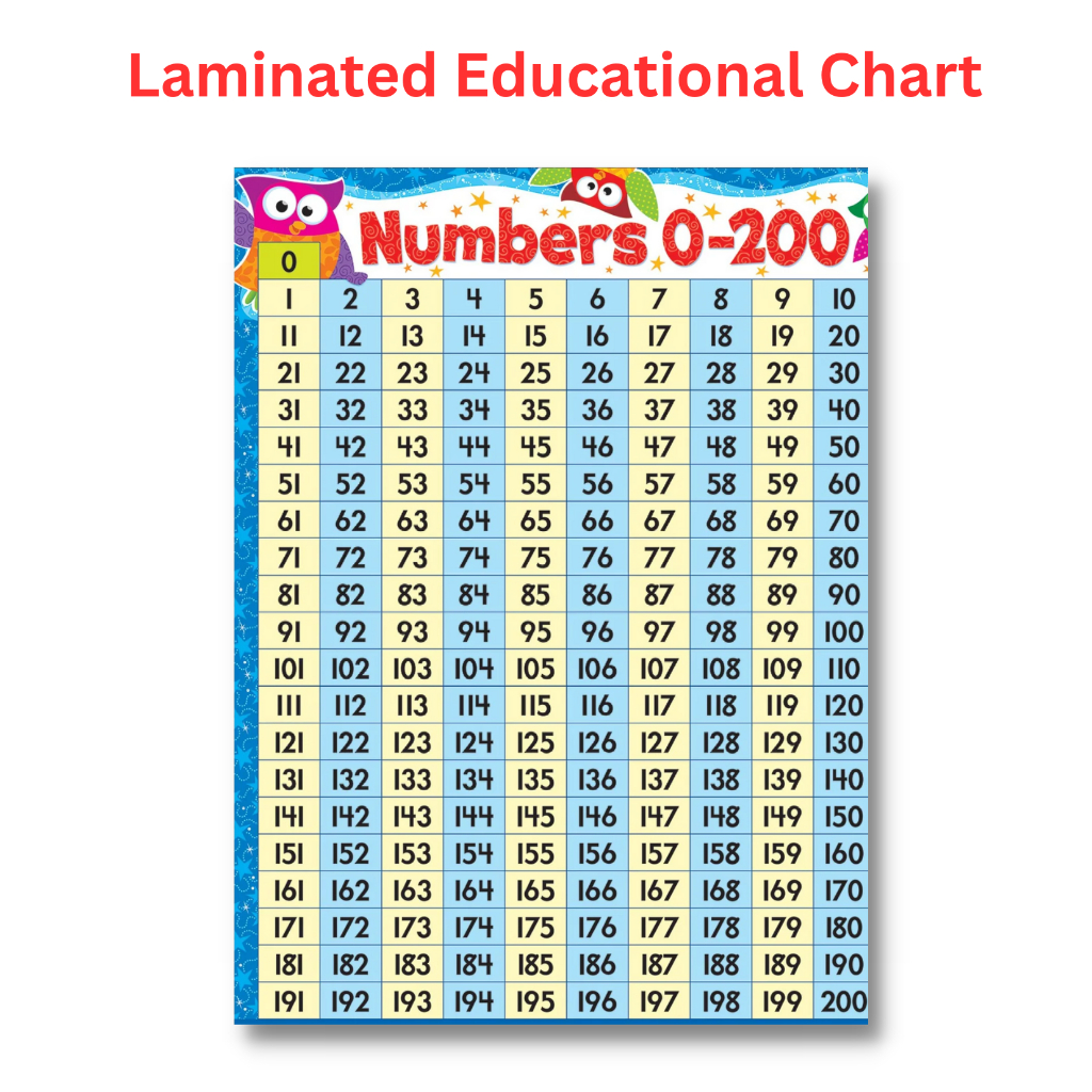 Laminated Numbers 200, Numbers 100 Charts for Kids, Learners, Students and Educators
