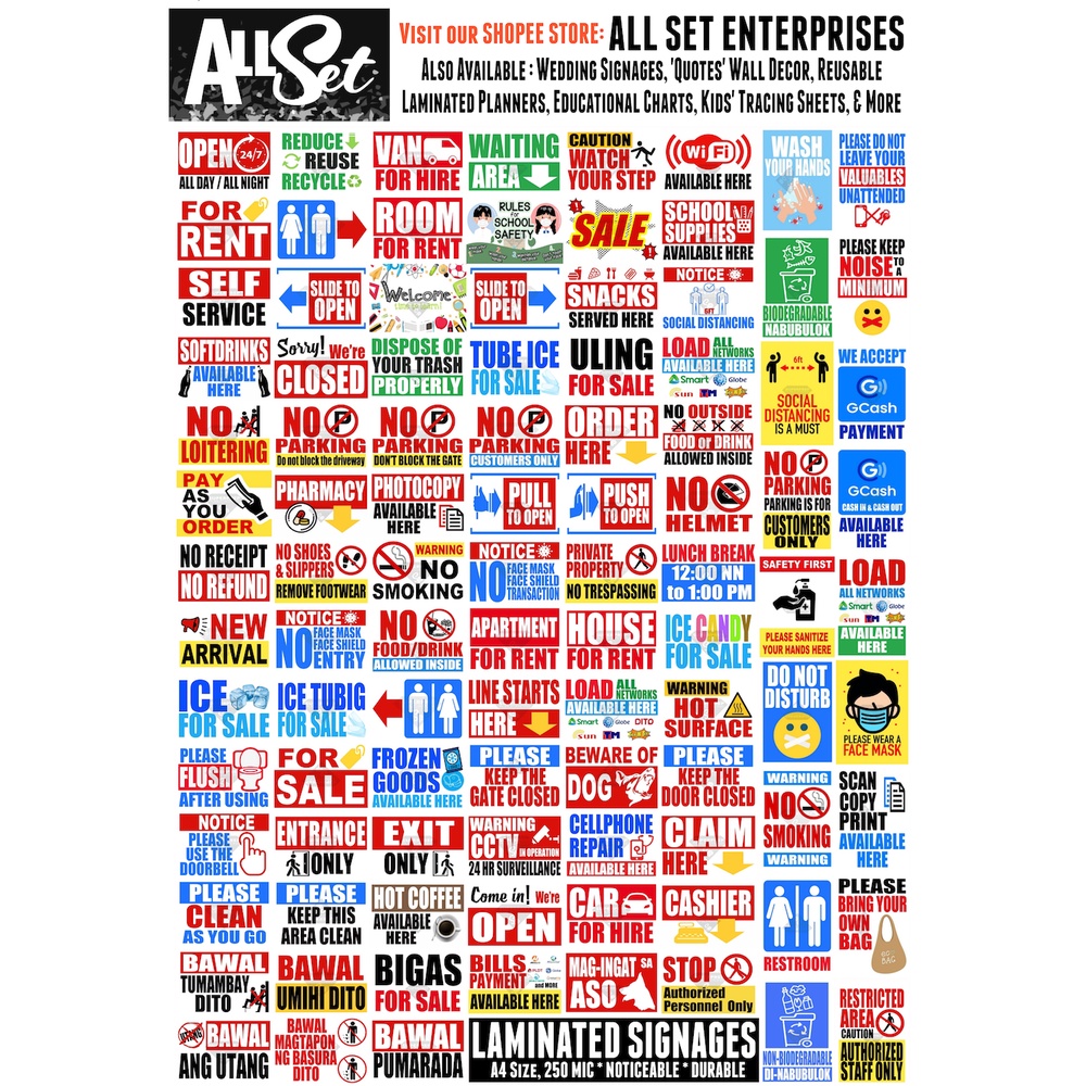 Laminated Sign Boards 3 SCHOOL OFFICE STORE - A4 FaceMasks Sanitize Social Distancing Wash Hands