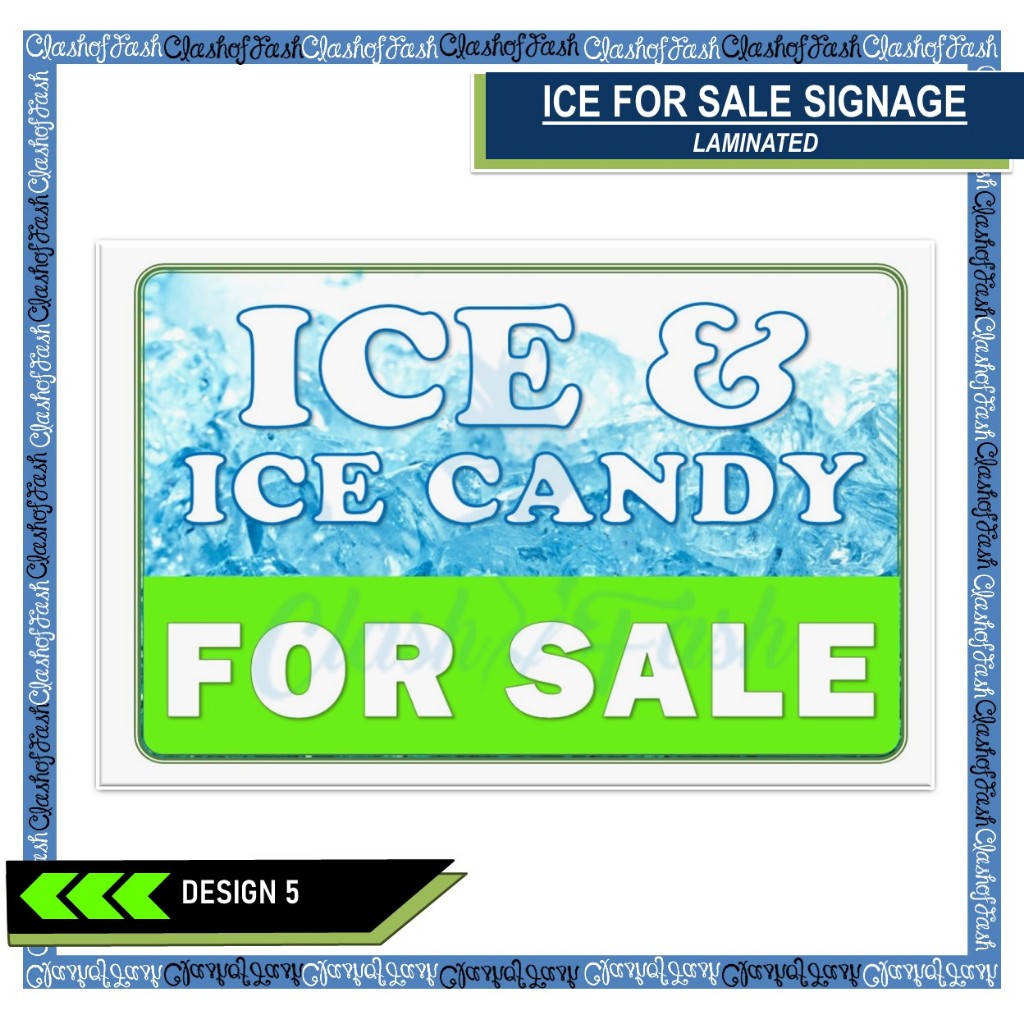 Laminated Signage: ICE AND ICE CANDY FOR SALE | A4 (8"X11") & Half Bondpaer Size (A5)