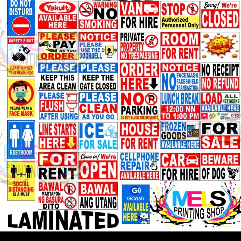 Laminated Signages 2 - Face Mask Sanitize Distancing Open Closed NO Parking NO Smoking Sign Boards