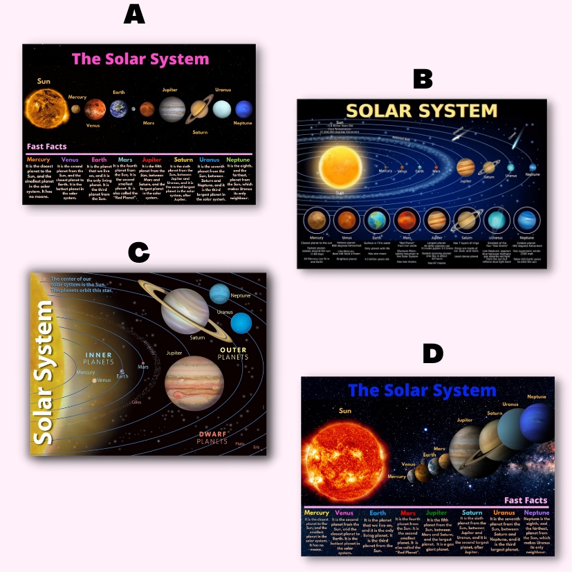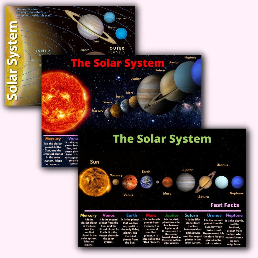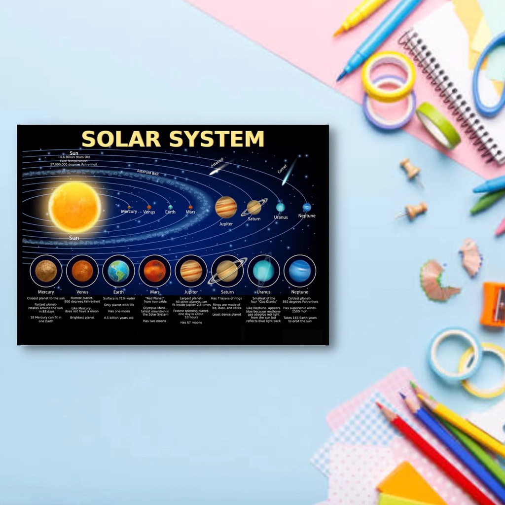 Laminated Solar System Charts, Planet Charts for Kids, Learners and Students