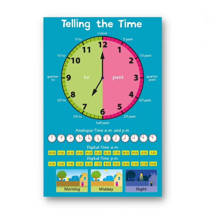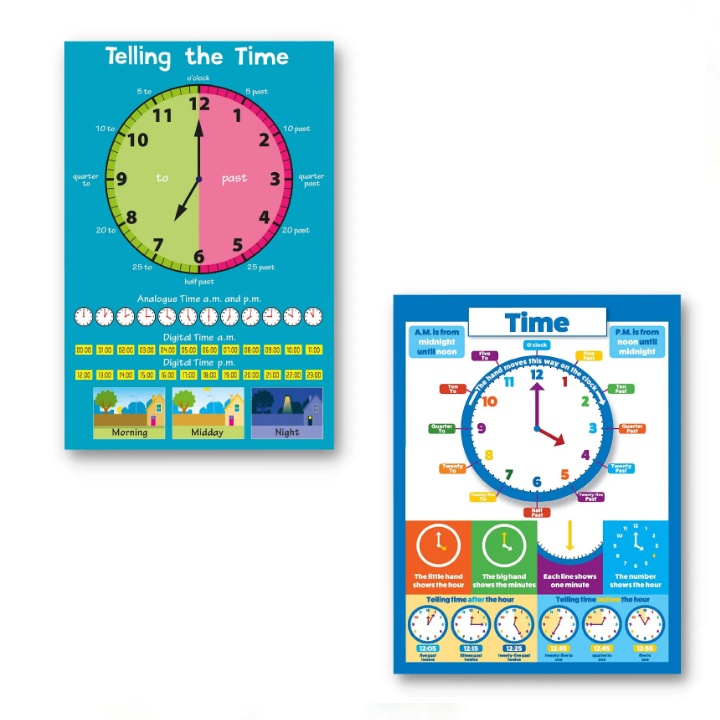 Laminated Telling Time Charts for Kids, Learners and Educators, Educational Charts