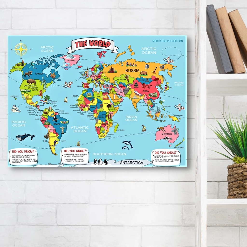 Laminated World Map, Educational Charts for Kids, Learners and Students