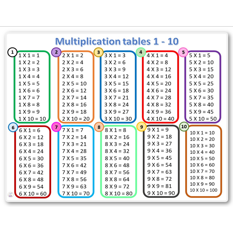 Laminated chart Multiplication table 1-10 Educational chart for kids | Learning Material