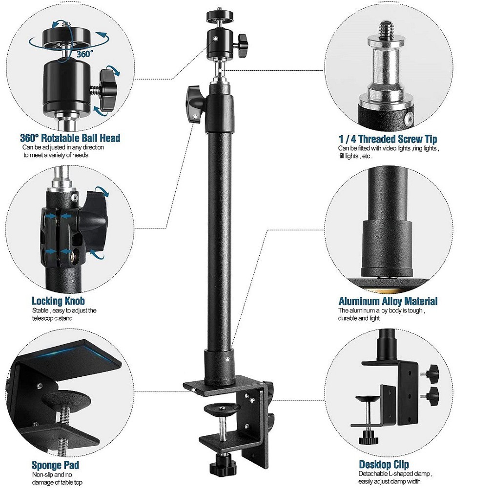 Lammcou Desk Camera Mount Stand Tabletop C Clamp With 360 Degree Rotatable Ball Head