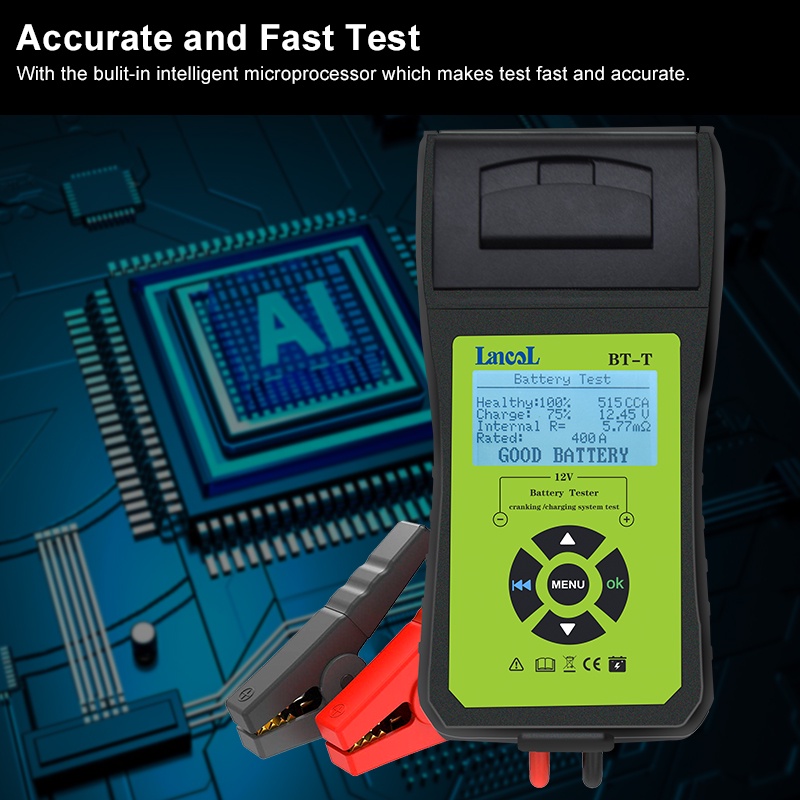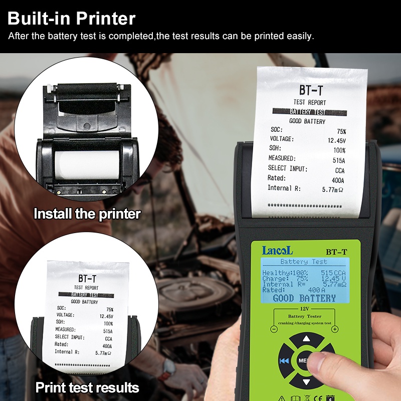 Lancol BT-T Car Battery Tester Battery System Analyzer with Printer Multilanguage Automotive Power System Diagnostic Meter