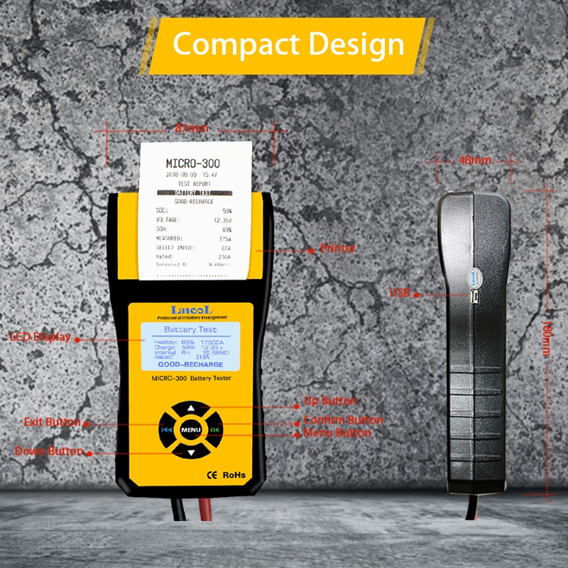 Lancol Micro-300 Battery Tester And Voltage Meter Tools 12V Battery Capacity Tester With Printer Automotive Alternator P