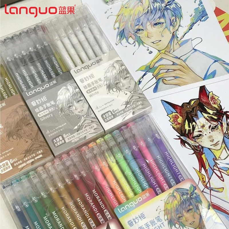 Languo 117 colors gel pen Joint payment morandi blue cute Large capacity Morandi color scheme for painting