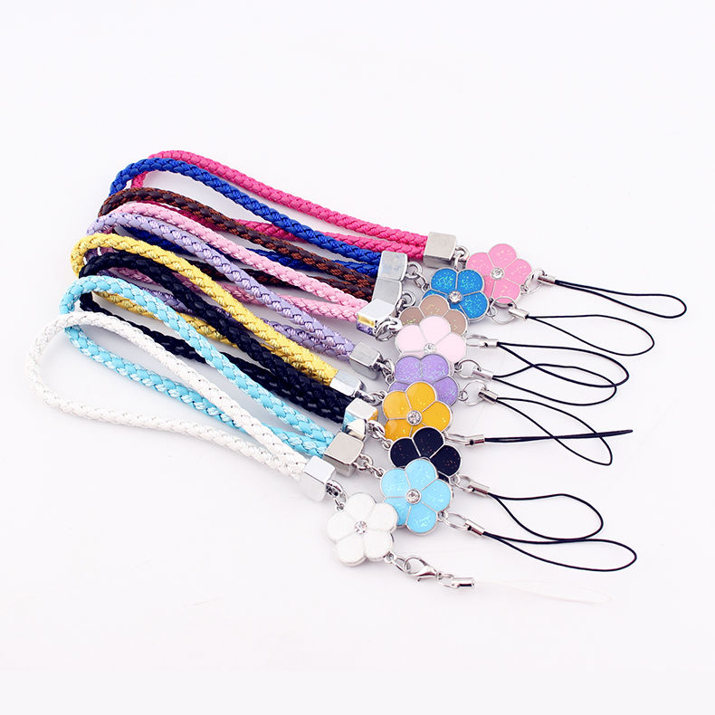 Lanyard Wrist-rope Braided leather Stretch Wrist Strap Lanyard for iPhone Android Samsung Keychain Strap USB Hanging Rope Flower