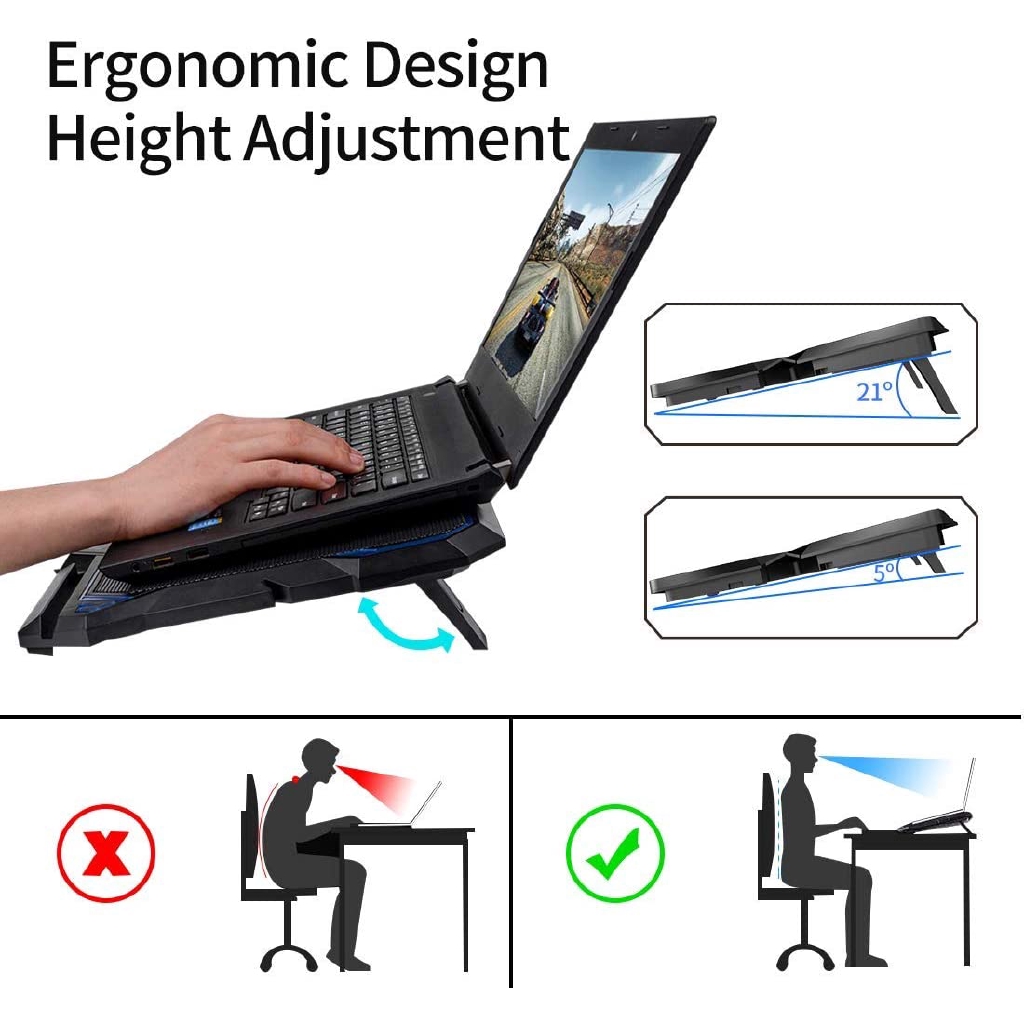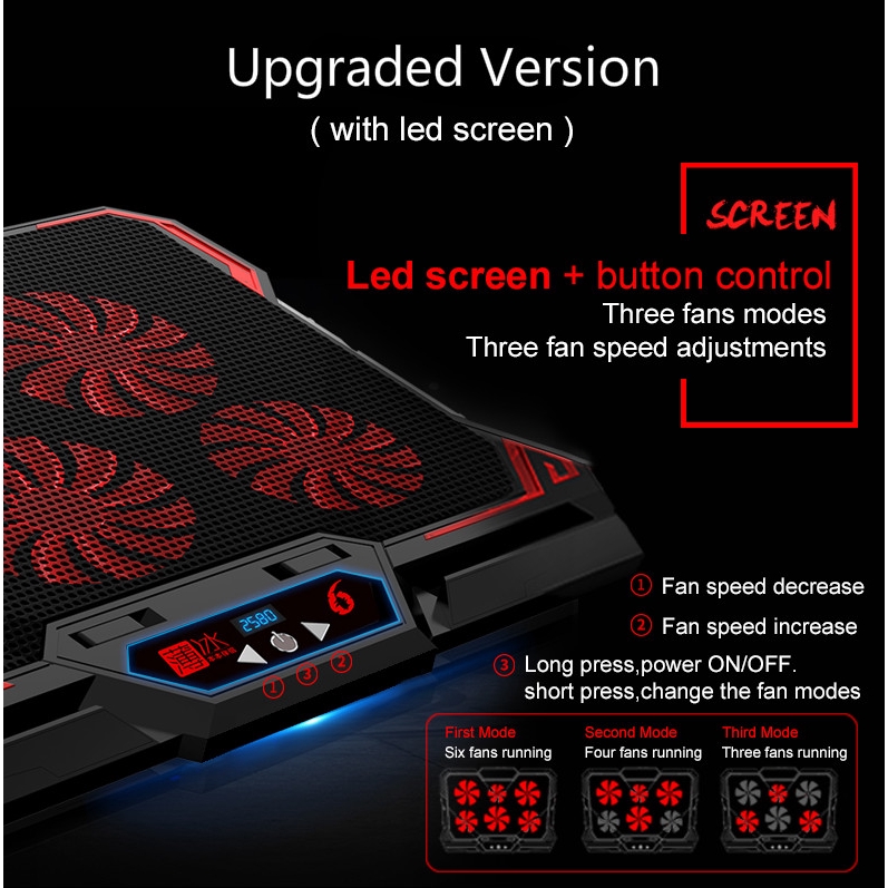 Laptop Cooling Pad, Laptop Cooler with 6 Quiet Led Fans for 15.6-17 Inch Laptop Cooling Fan Stand, Portable Ultra Slim USB Powered Gaming Laptop Cooling Pad, Switch Control Fan Speed Function