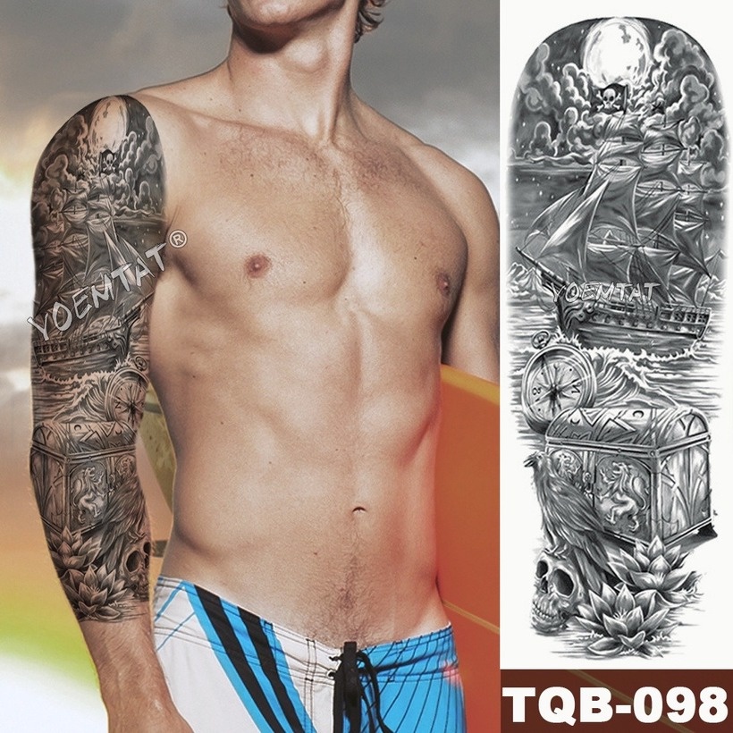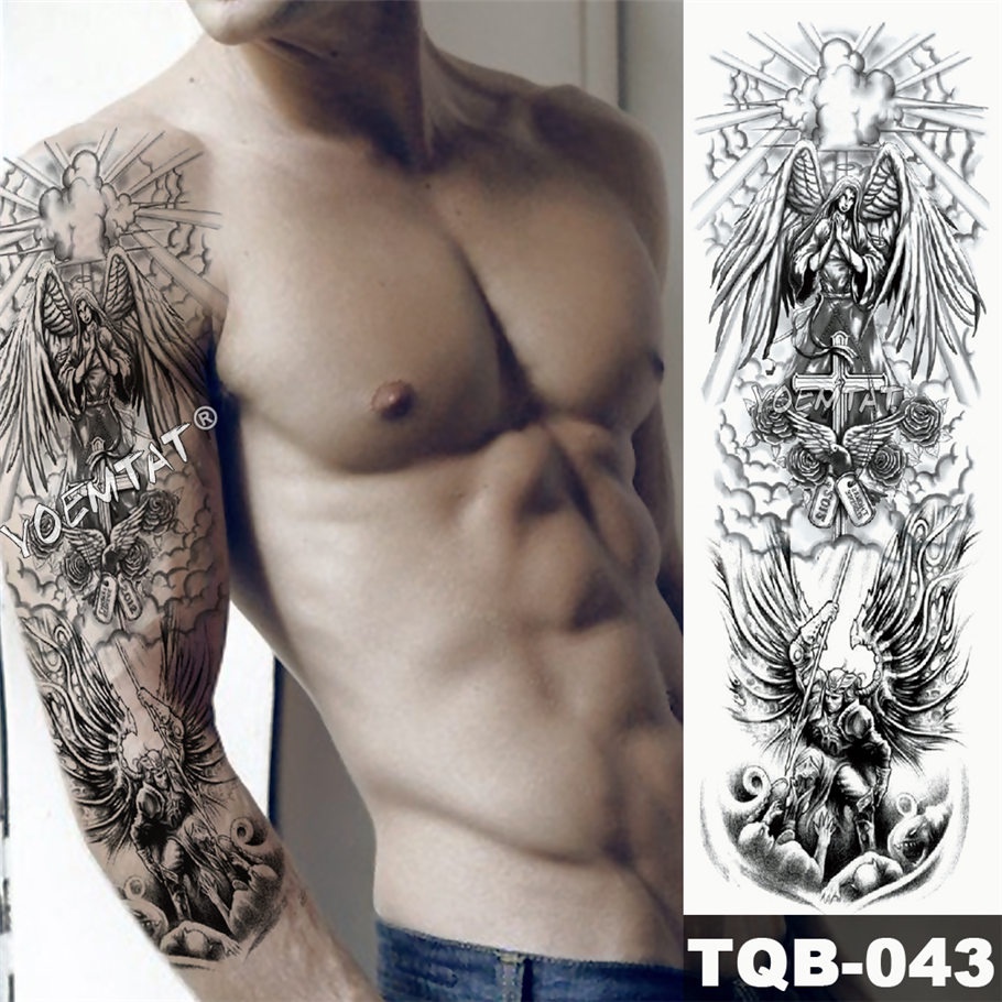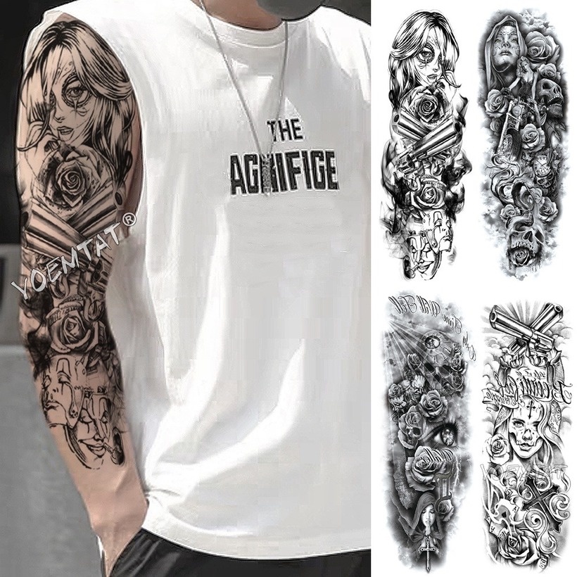 Large Arm Sleeve Tattoo Mask Rose Gun Waterproof Temporary Fake Tatoo Sticker Skull Old School Cross Pray Men Women Full Tatto Sell Well