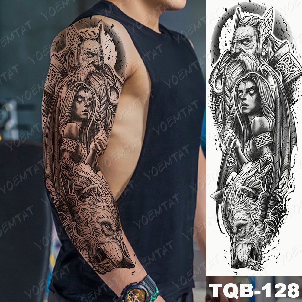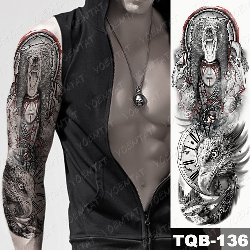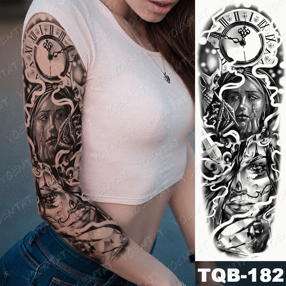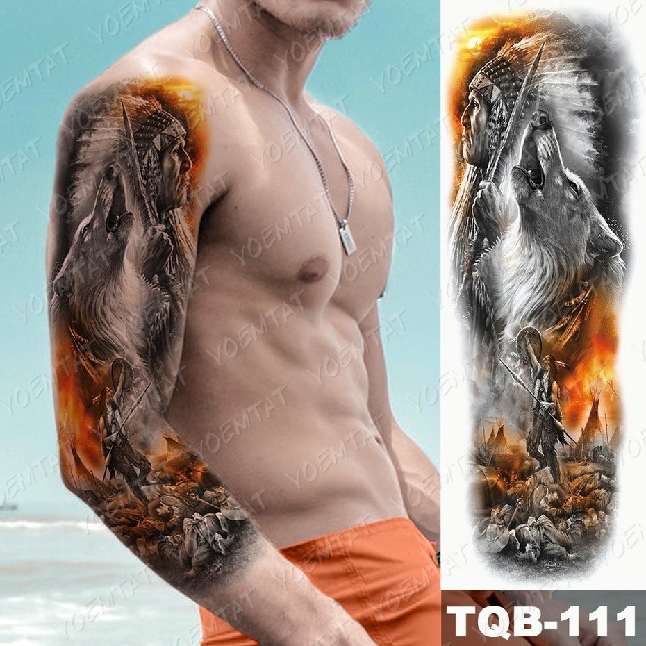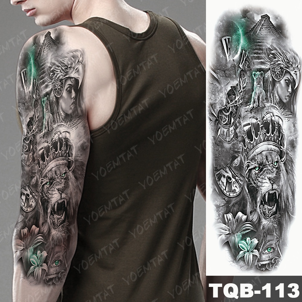 Large Arm Sleeve Tattoo Pyramid Egyptian Leopard Waterproof Temporary Tatto Sticker Lion Owl Body Art Full Fake Tatoo Women Men Beautiful