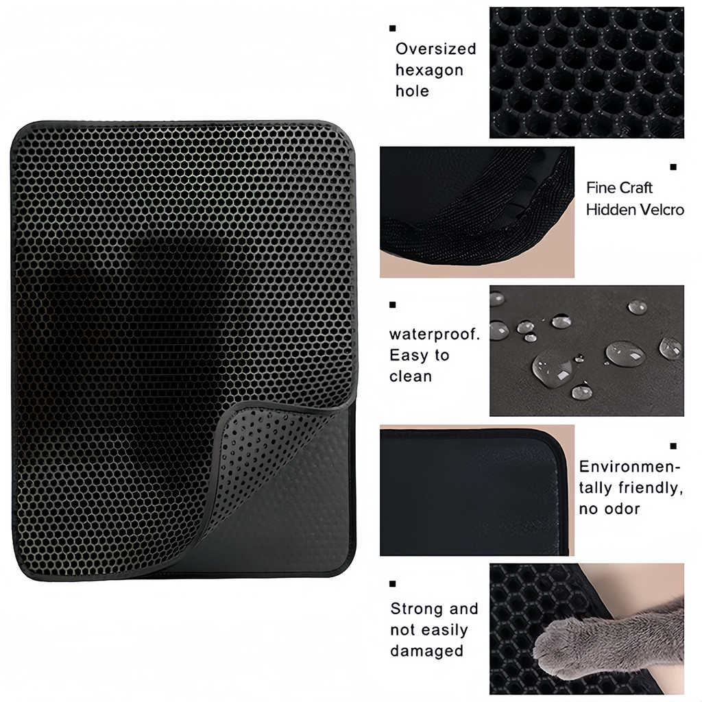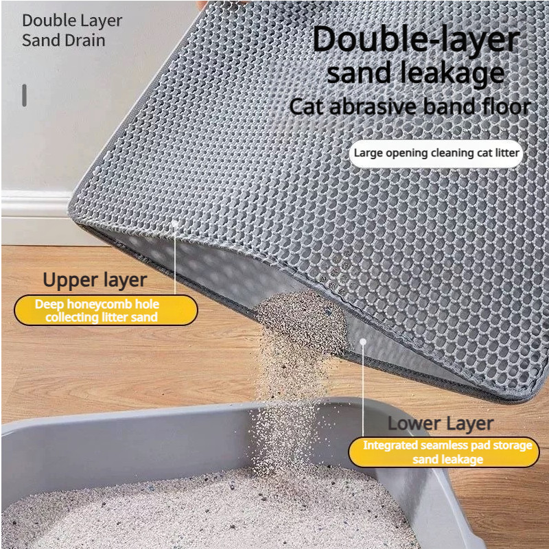 Large Cat Litter Mat 70*120 EVA Double-Layer Cat Litter Pad Anti Slip Waterproof Cat Litter Trapper