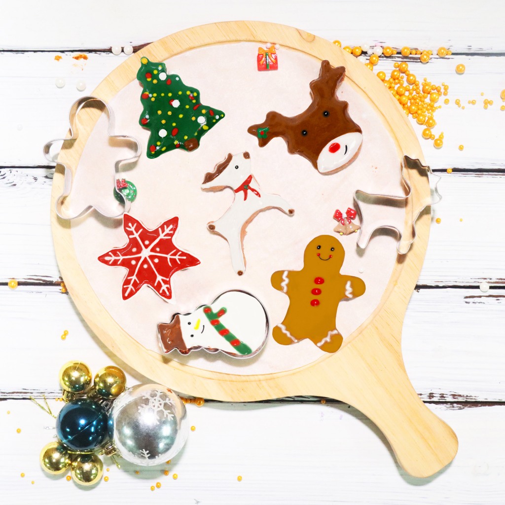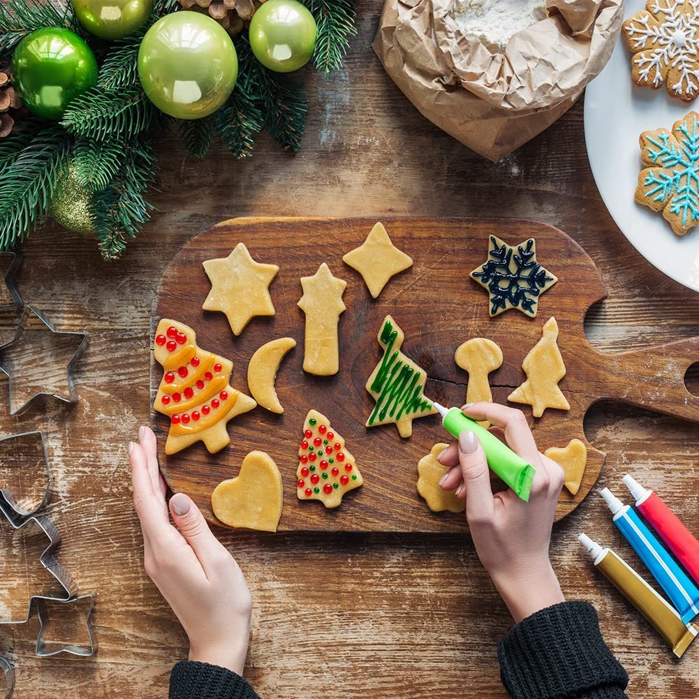 Large Christmas Cookie Cutters Set, DIY Cookie Cutters Shapes - Christmas Tree, Snowman, Gingerbread Man, Snowflake, Candy Cane, Santa Face Stainless Steel Holiday Cookie
