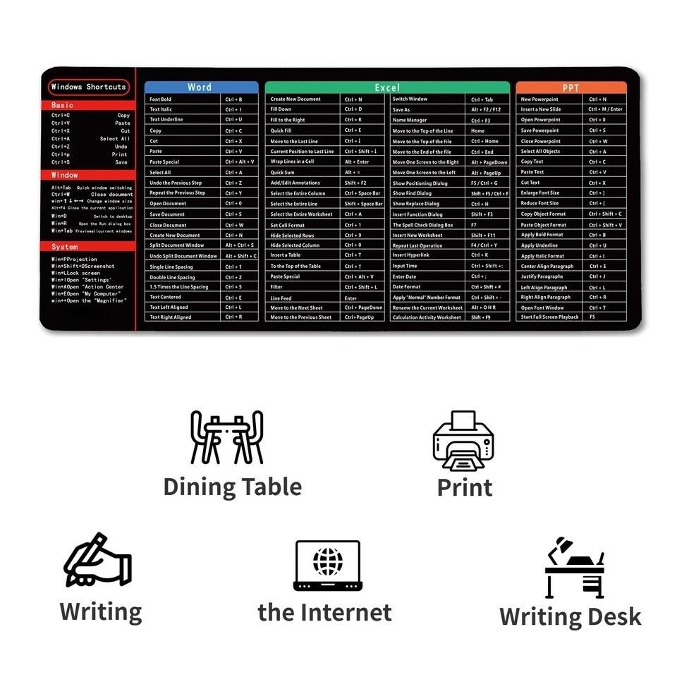 Large Extended Mouse Pad Gaming Keyboard Pad Mat Large Mousepad Extended with Clear Printed Word