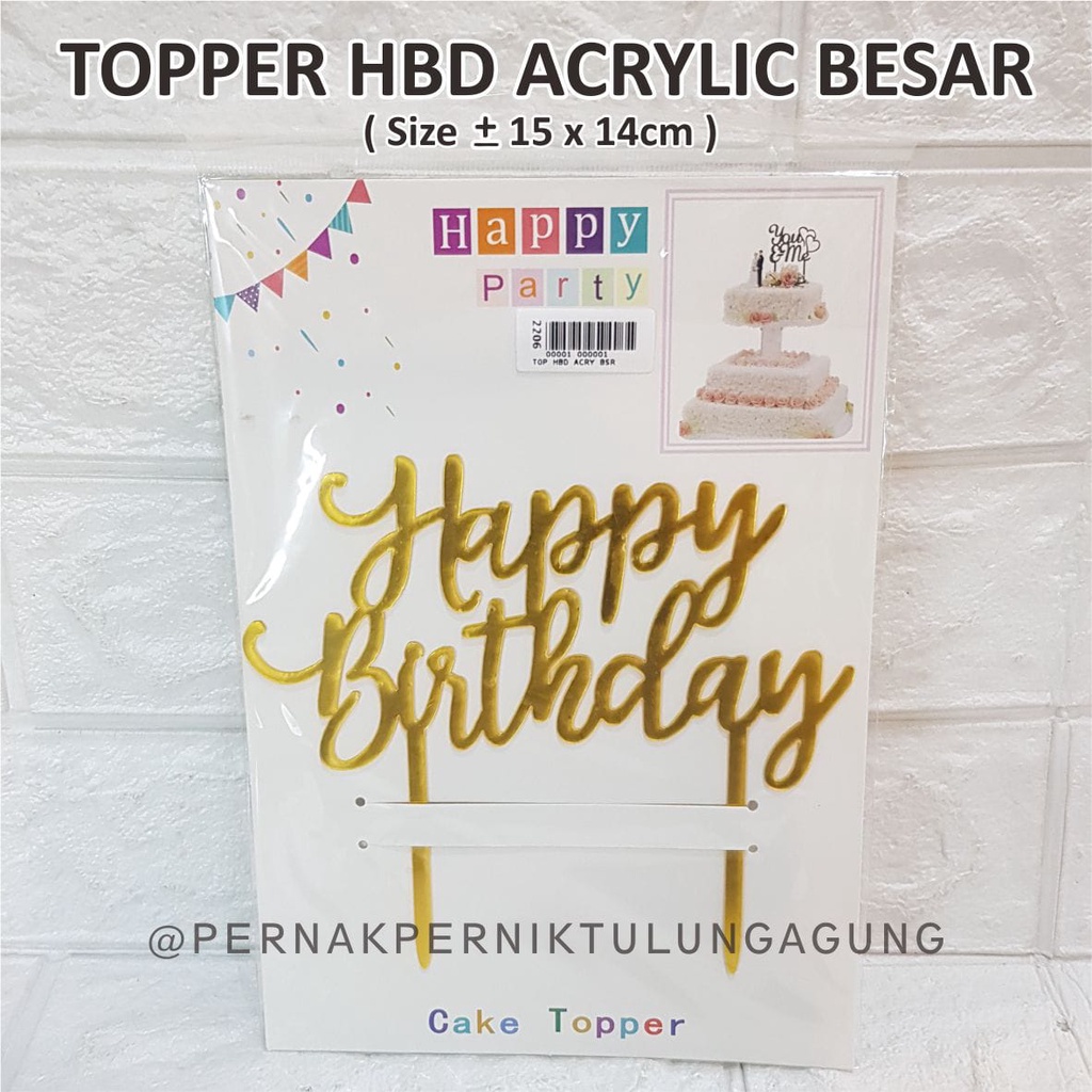 Large Gold Acrylic HBD Topper - Birthday Party Cake Topper
