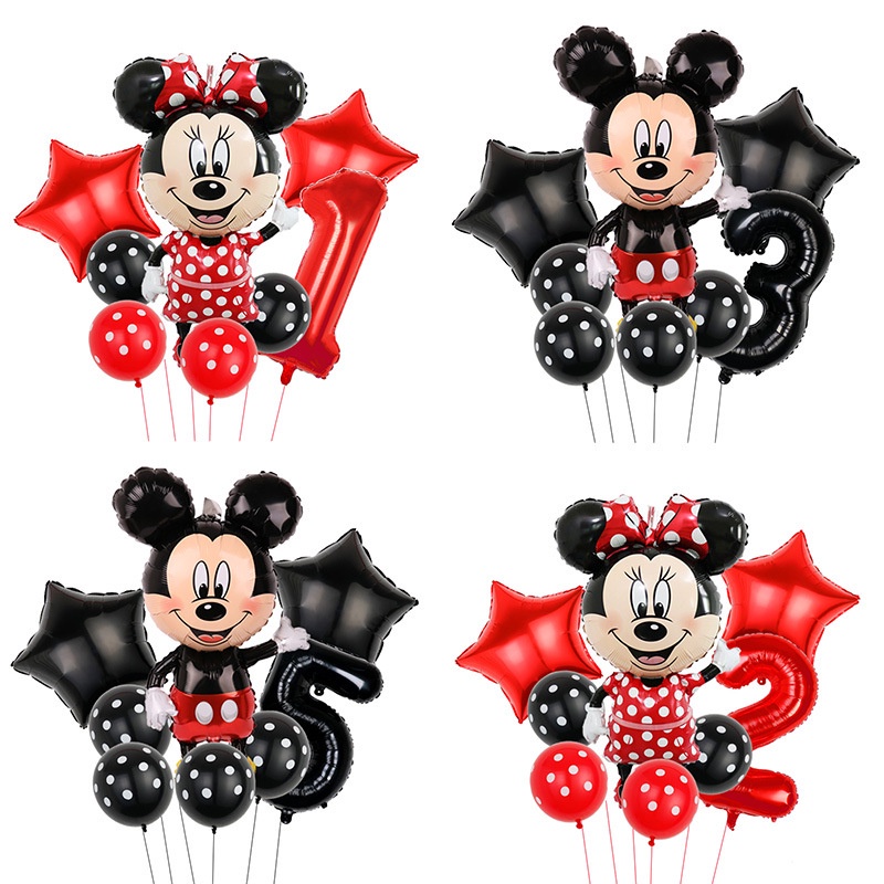 Large Mickey Minnie Mouse Theme Latex Balloons Digital Birthday Decoration Cartoon Balloon Baby Shower Party Needs