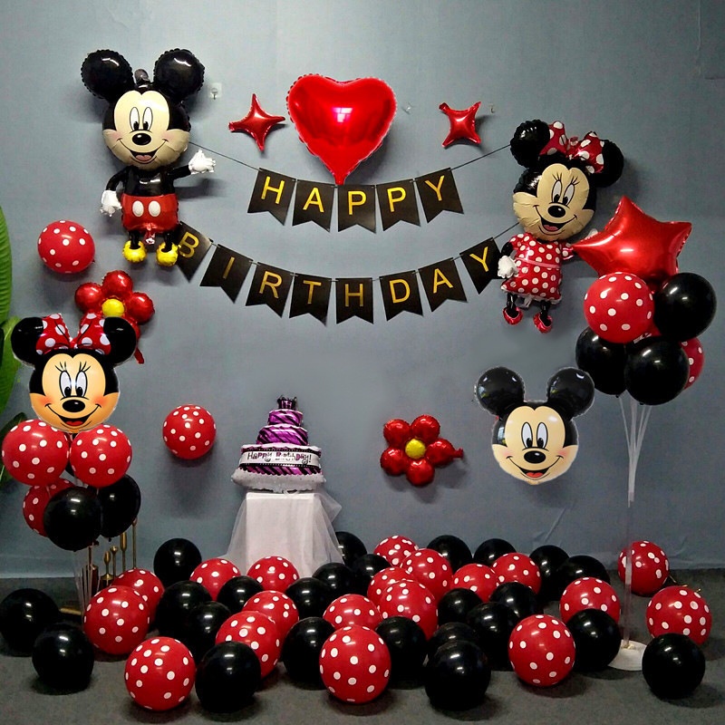 Large Mickey and Minnie Birthday Balloons Cartoon Shaped Polka Dot Mickey and Minnie Birthday Party Balloons