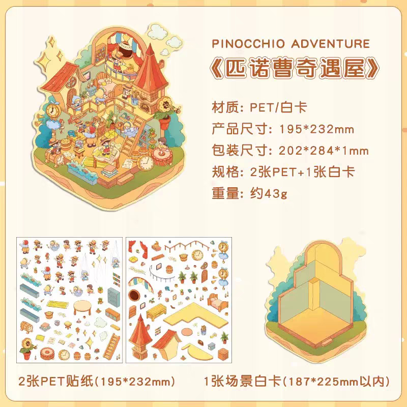 Large Miniature Scene Stickers Cartoon Stacking Landscaping Stickers 3D Three-Dimensional Landscaping Collage diy Decompression Stickers