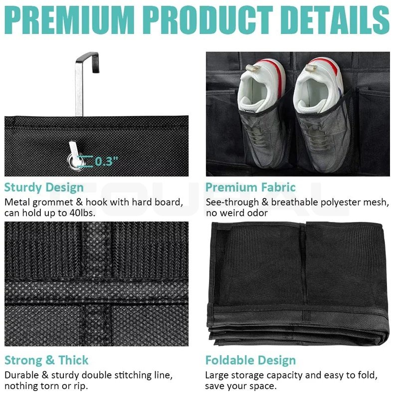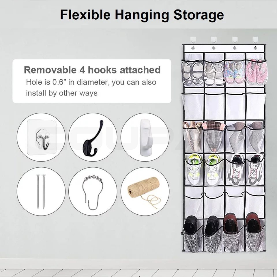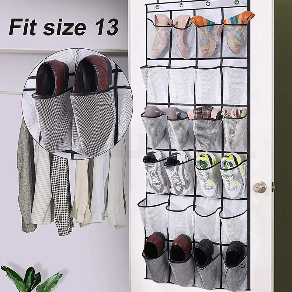 Large Over 24 Pocket Hanging Shoe Rack Organizer Mesh Shoe Box Shoes Organizer Storage Wall Mounted