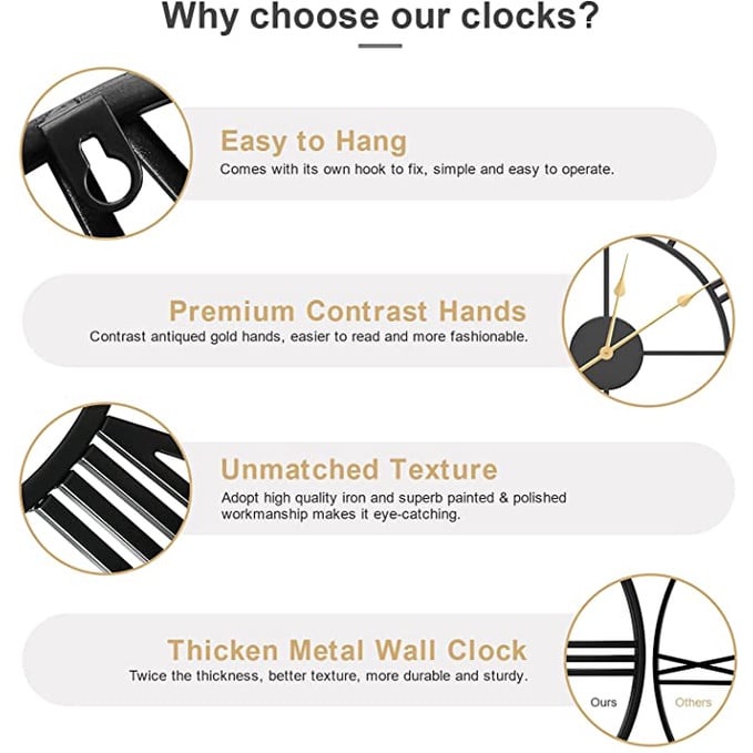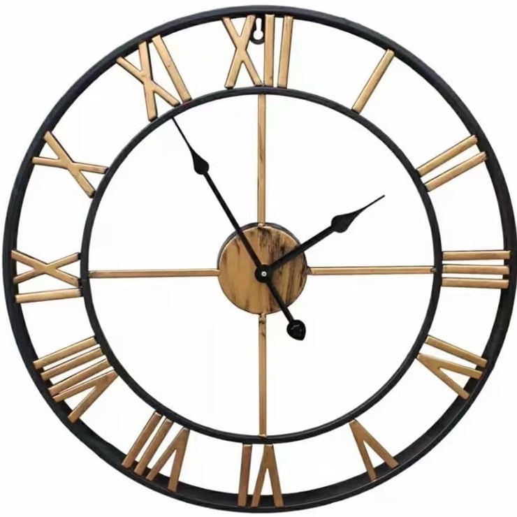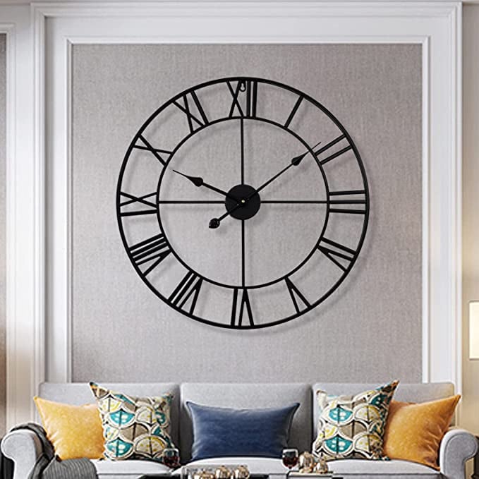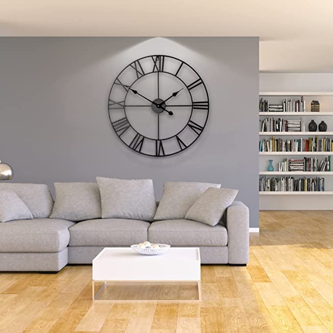 Large Roman Numeral Wall Clock Silent Non Ticking Battery Operated Quartz Round Big Metal Wall Clock