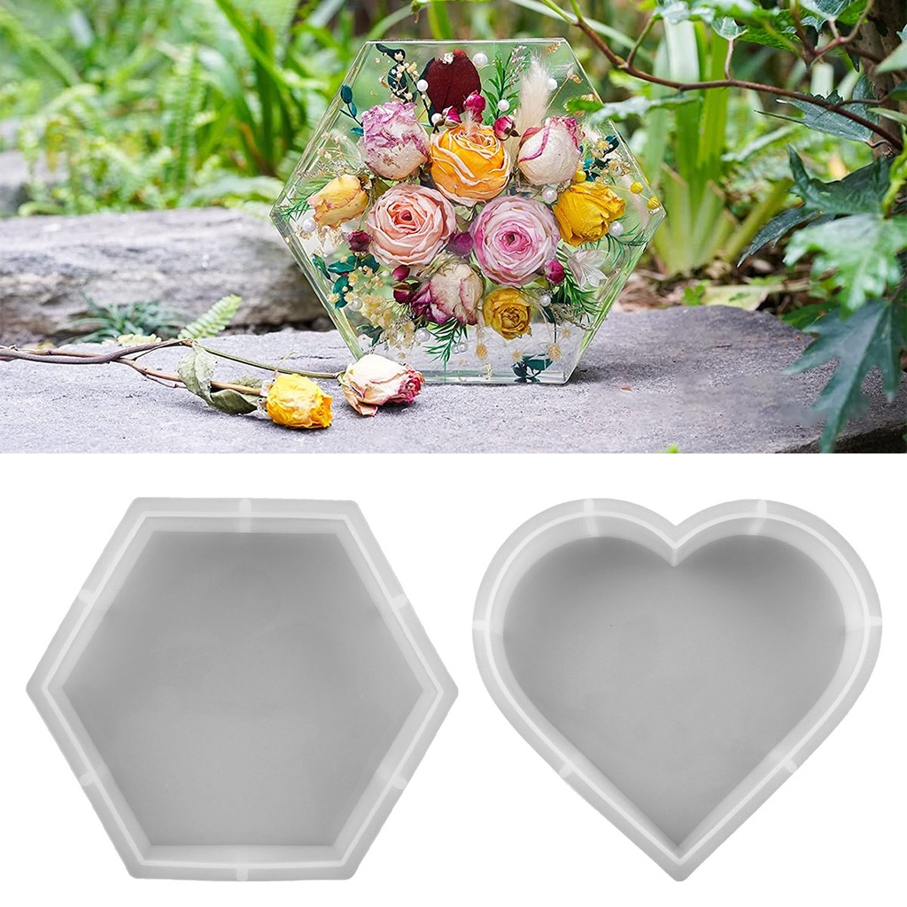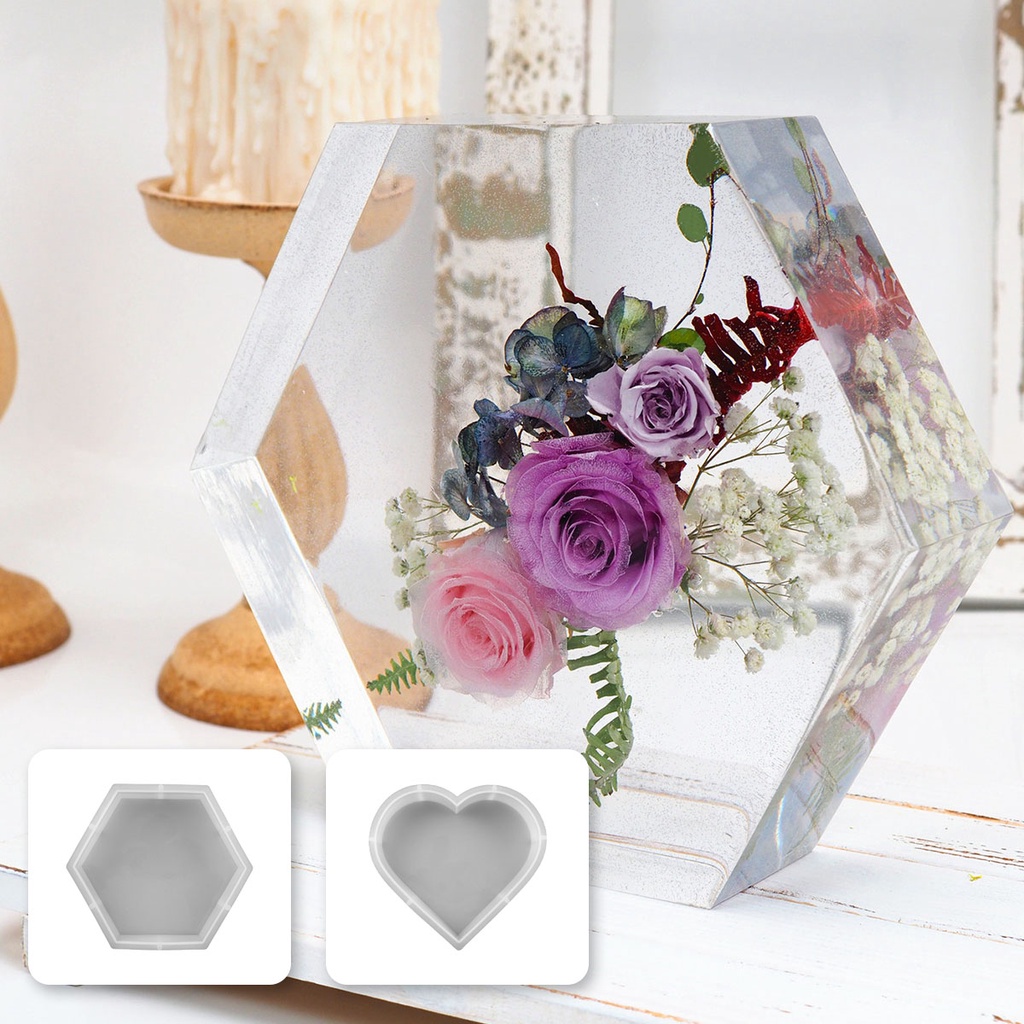 Large Silicone Molds Epoxy Resin Casting Molds Hexagon and Heart Shape Mould DIY Flower Preservation