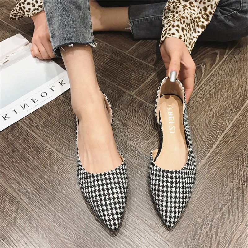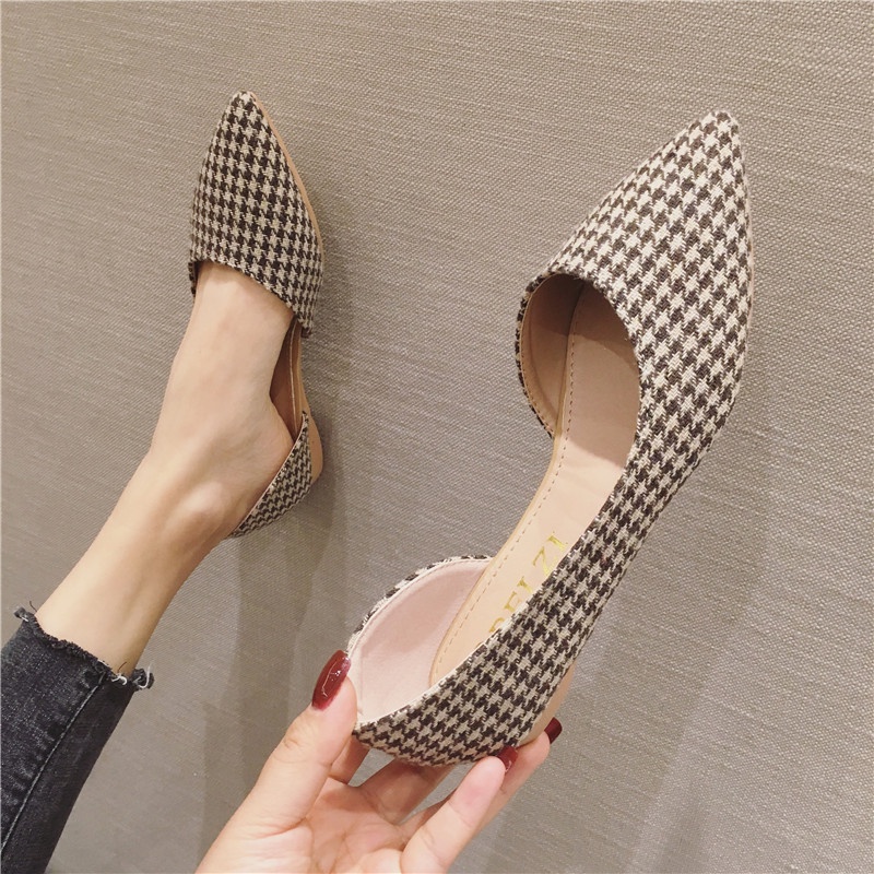 Large Size (31-46) Single Shoes Women Flat All-Match Pointed Toe Scoop Shoes Plaid Flat Heel Women's Shoes Large Size 46 45 44 43 Comfortable Office Workers Cabinet Sister