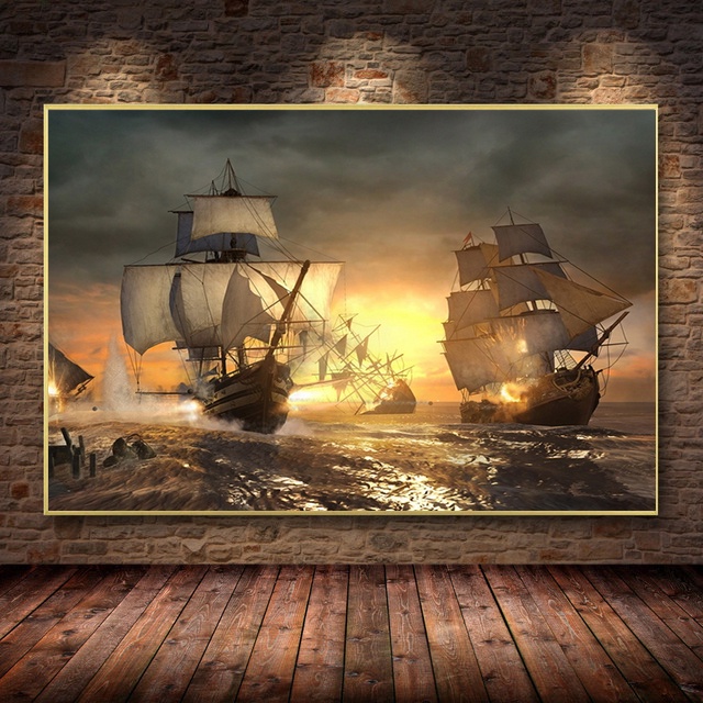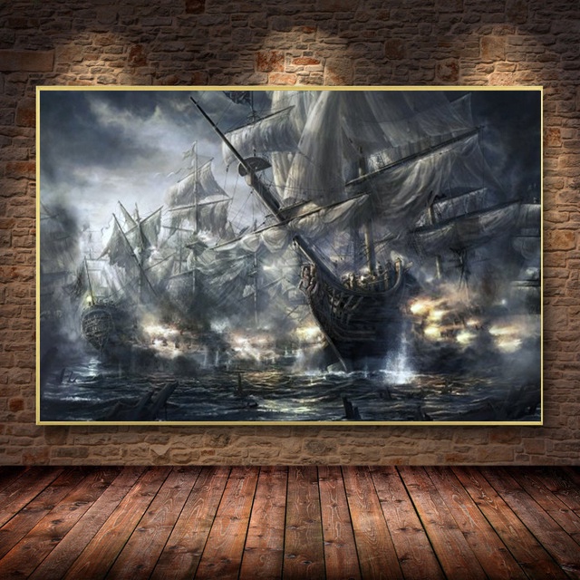 Large Size Vintage Pirate Ship Canvas Painting Black Sailing Ship At Sea Poster And Print Ship Wall Paintings For Living Room Home Decor