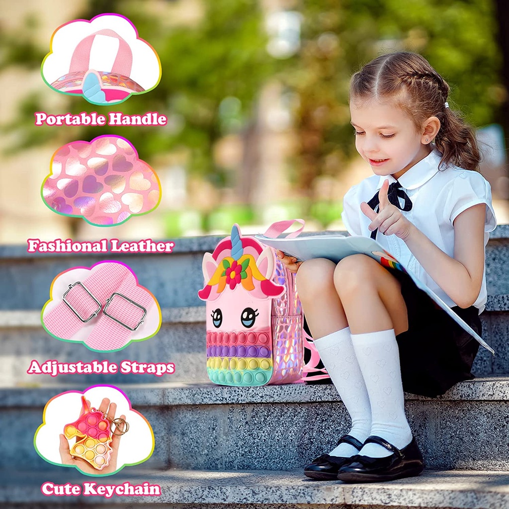 Large Unicorn Backpack Pop It Fidget Toy Girls Wallet Pop It Bag Kids Stress Relief School Supplies Birthday Party Gifts Pop Backpack