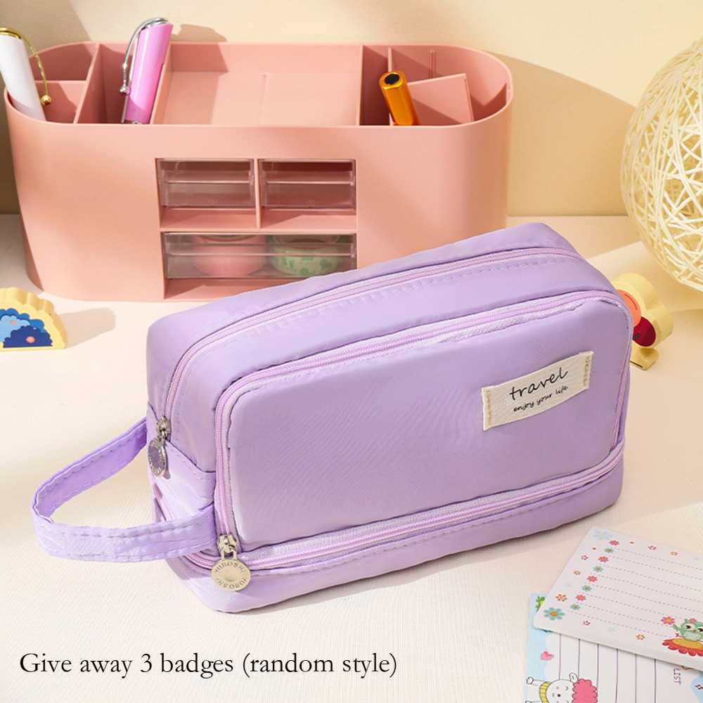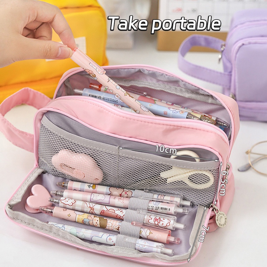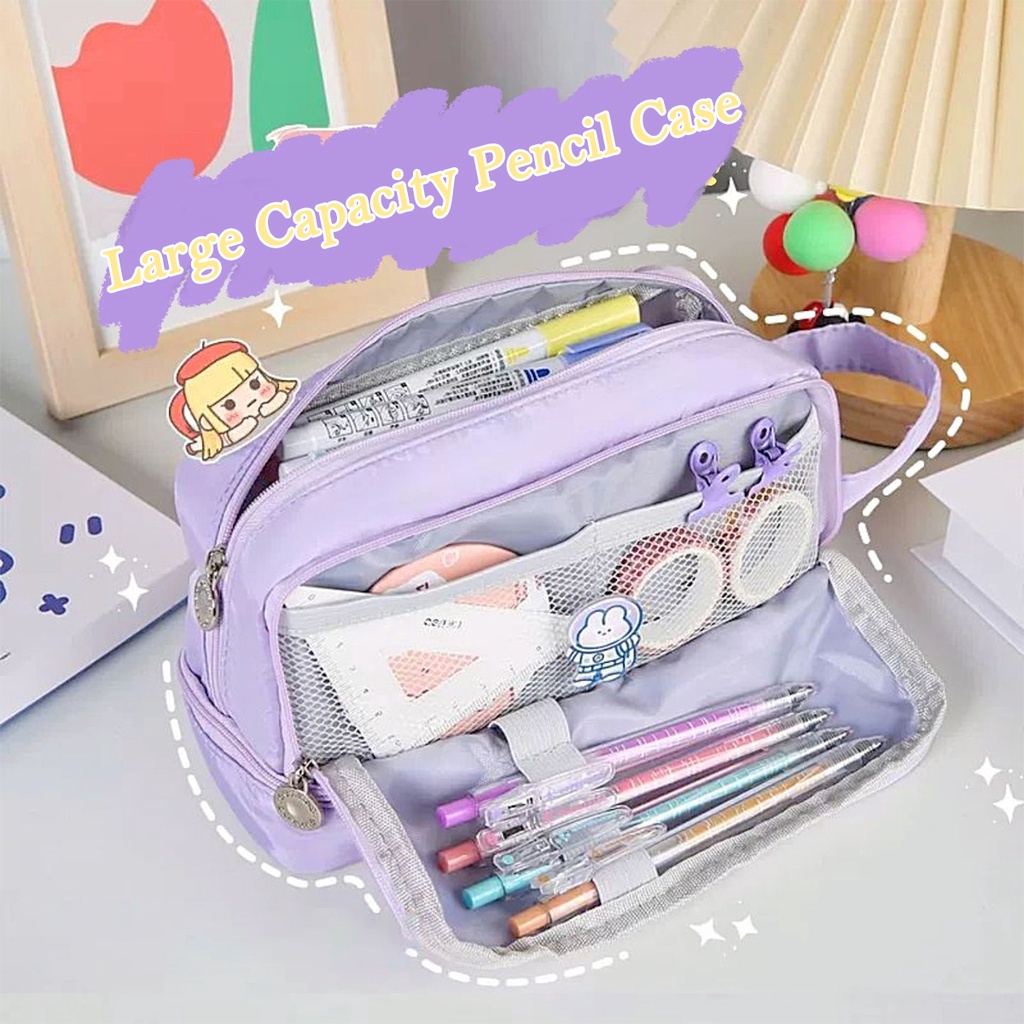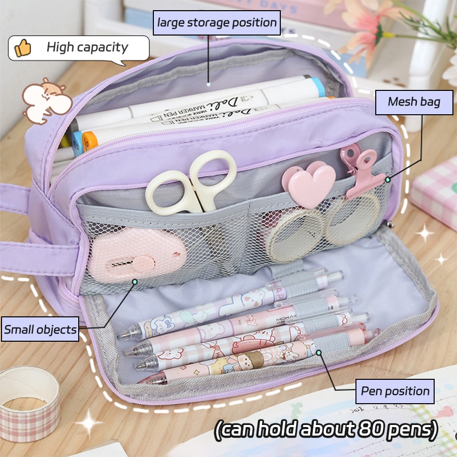 Large capacity Pencil Case Purple Canvas Pencil bag Cute Kawaii Pink Pencil Case Storage Bag Student Girl Stationery